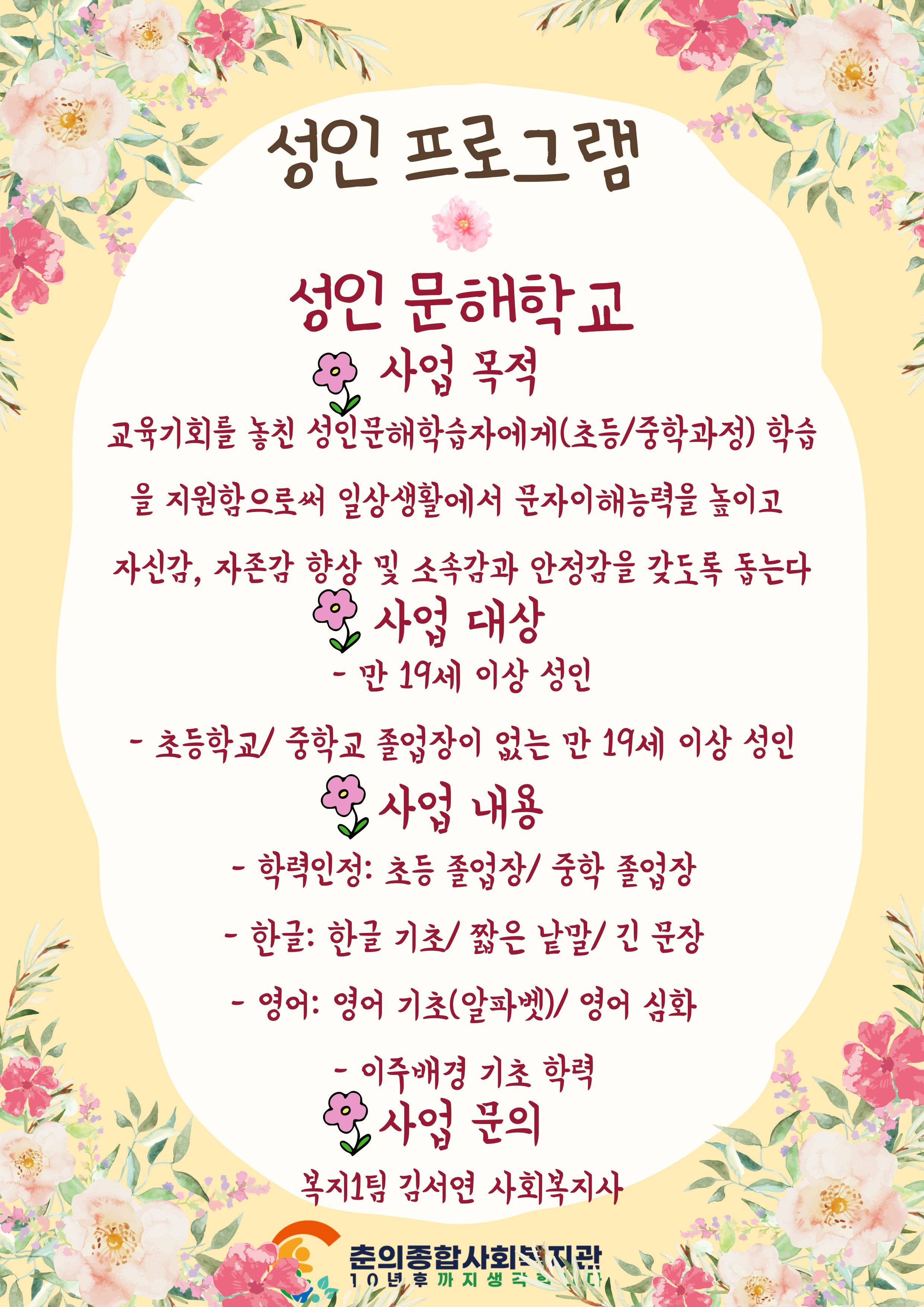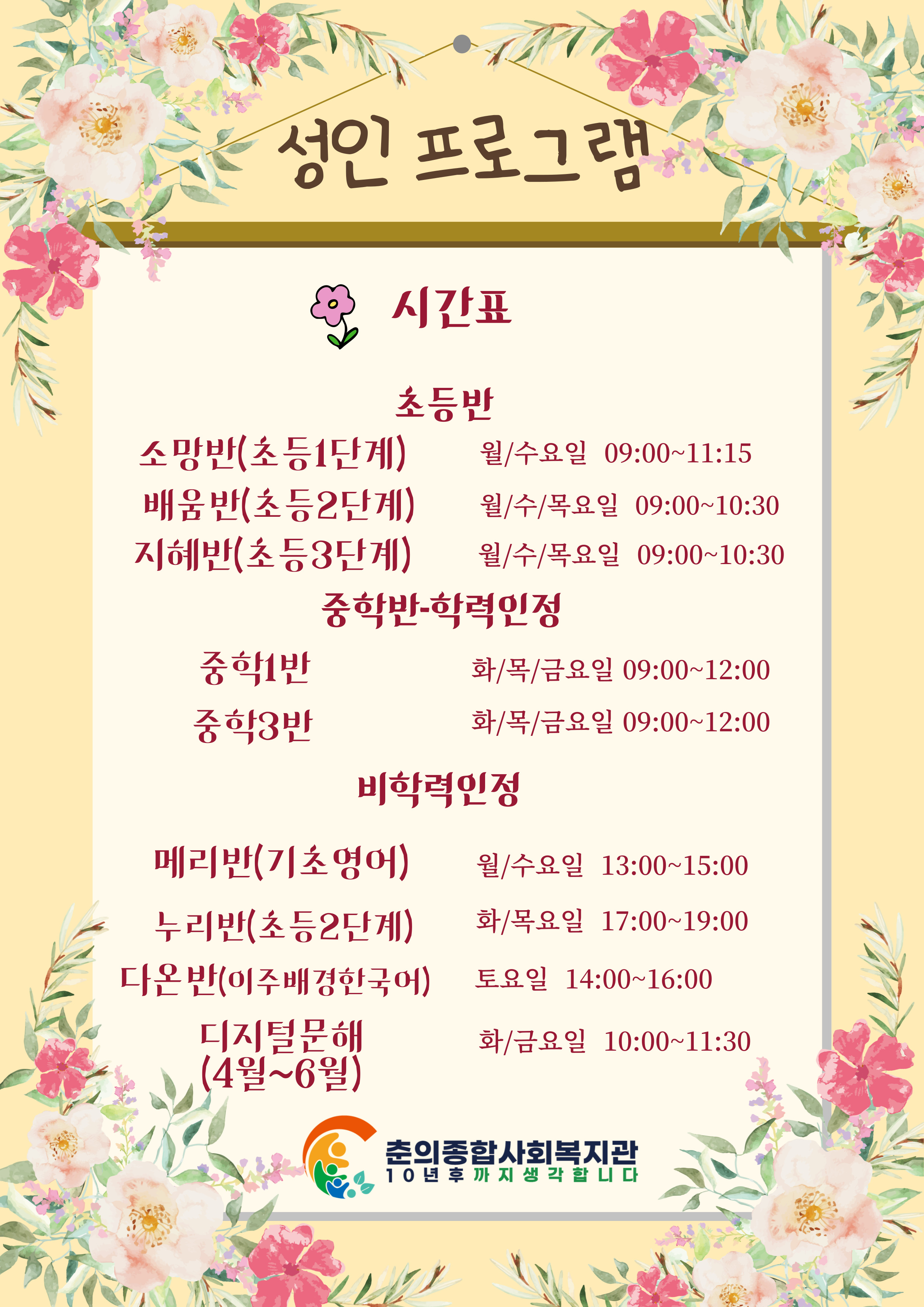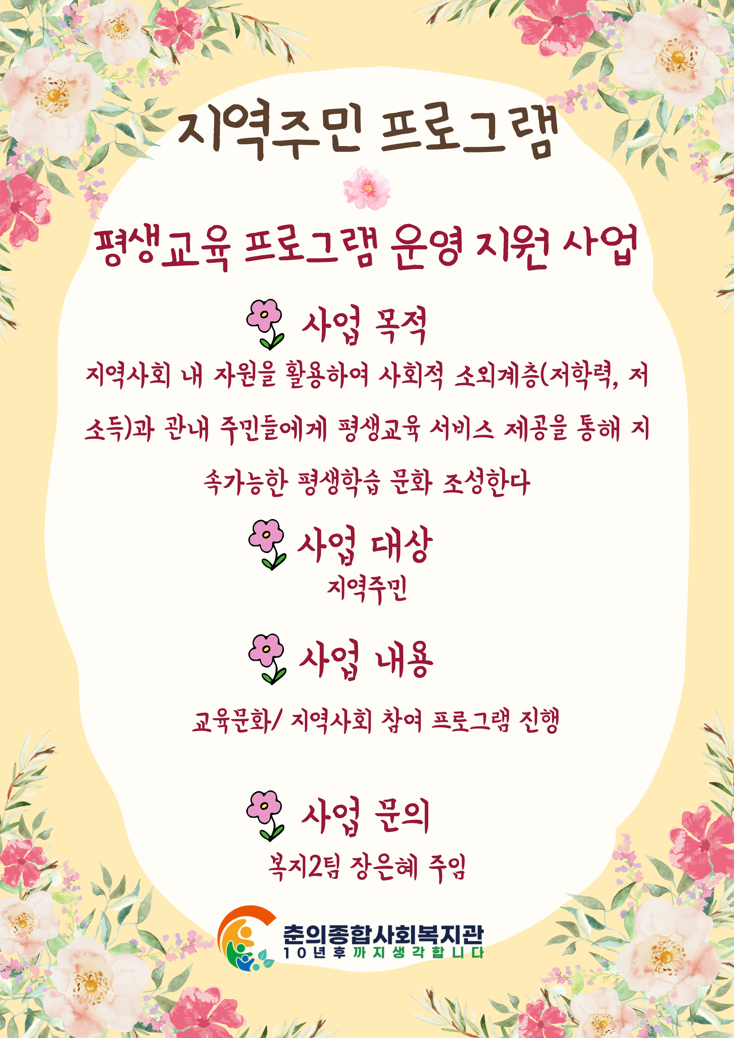 2025년 평생교육 프로그램 미달과목 추가등록 안내