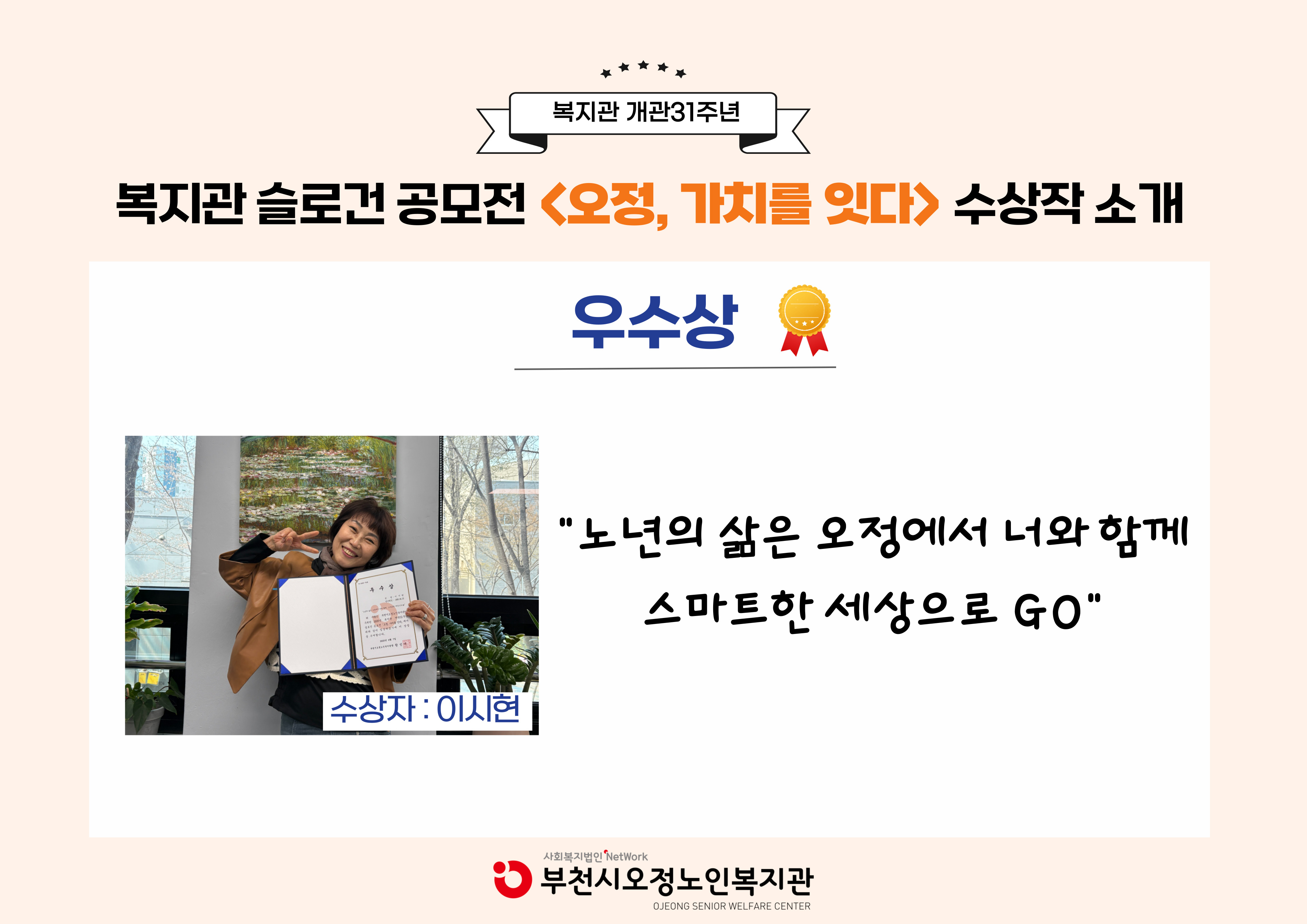 “노년의 삶은 오정에서 너와 함께 스마트한 세상으로 go”