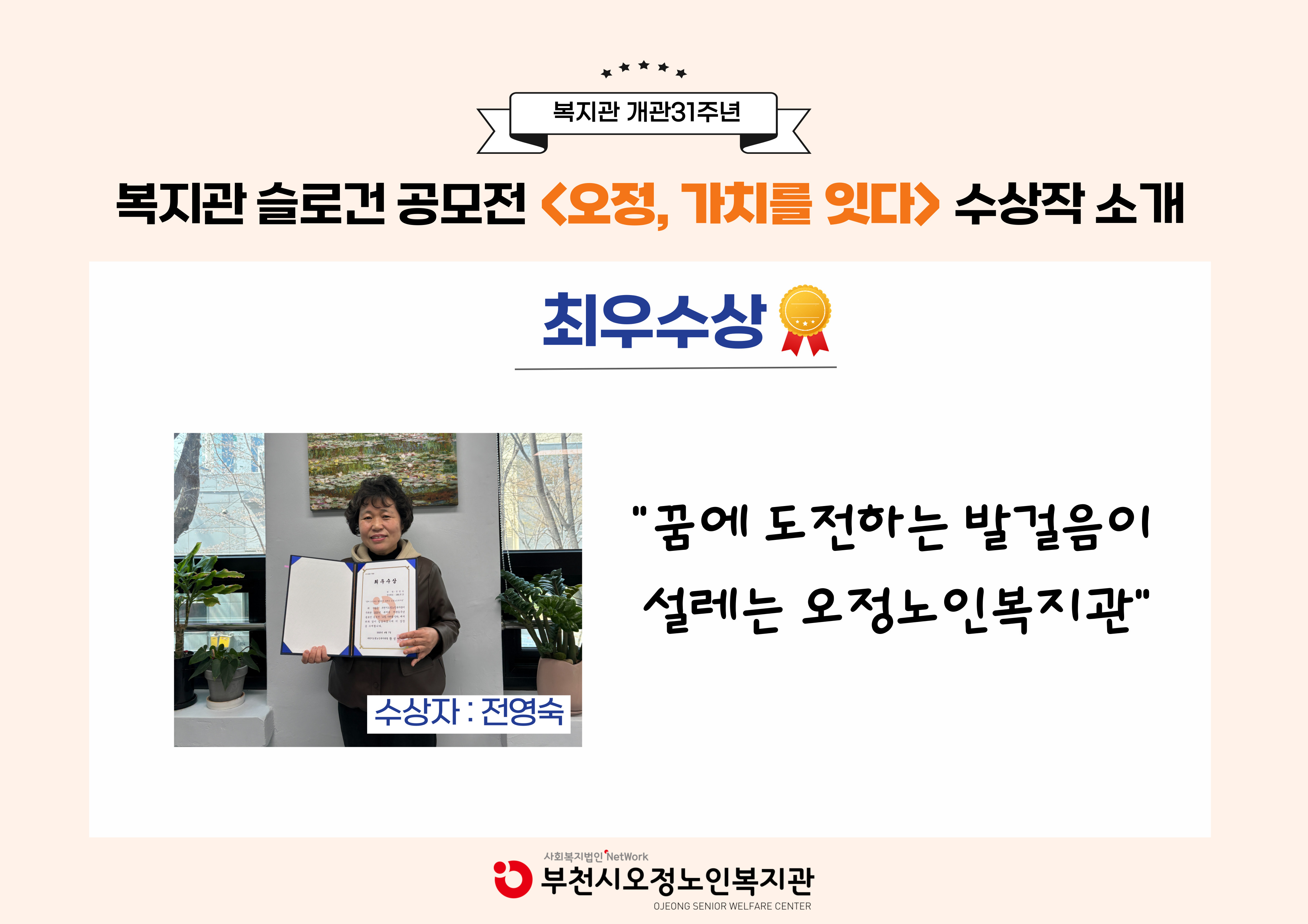 “꿈에 도전하는 발걸음이 설레는 오정노인복지관”