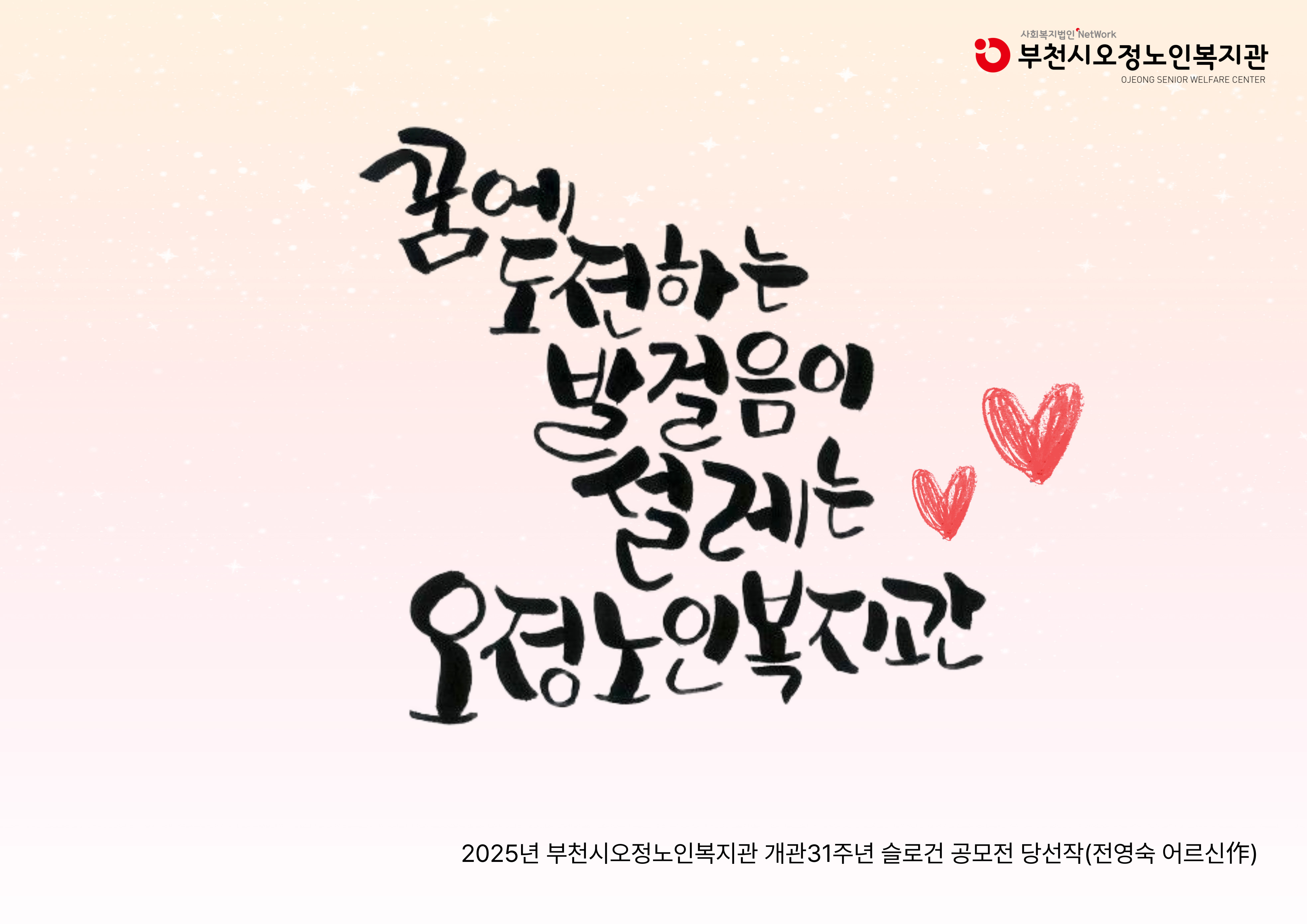 앞으로도 오정노인복지관은 어르신과 지역사회가 함께 성장하고 소통할 수 있는 공간으로 나아가겠습니다.