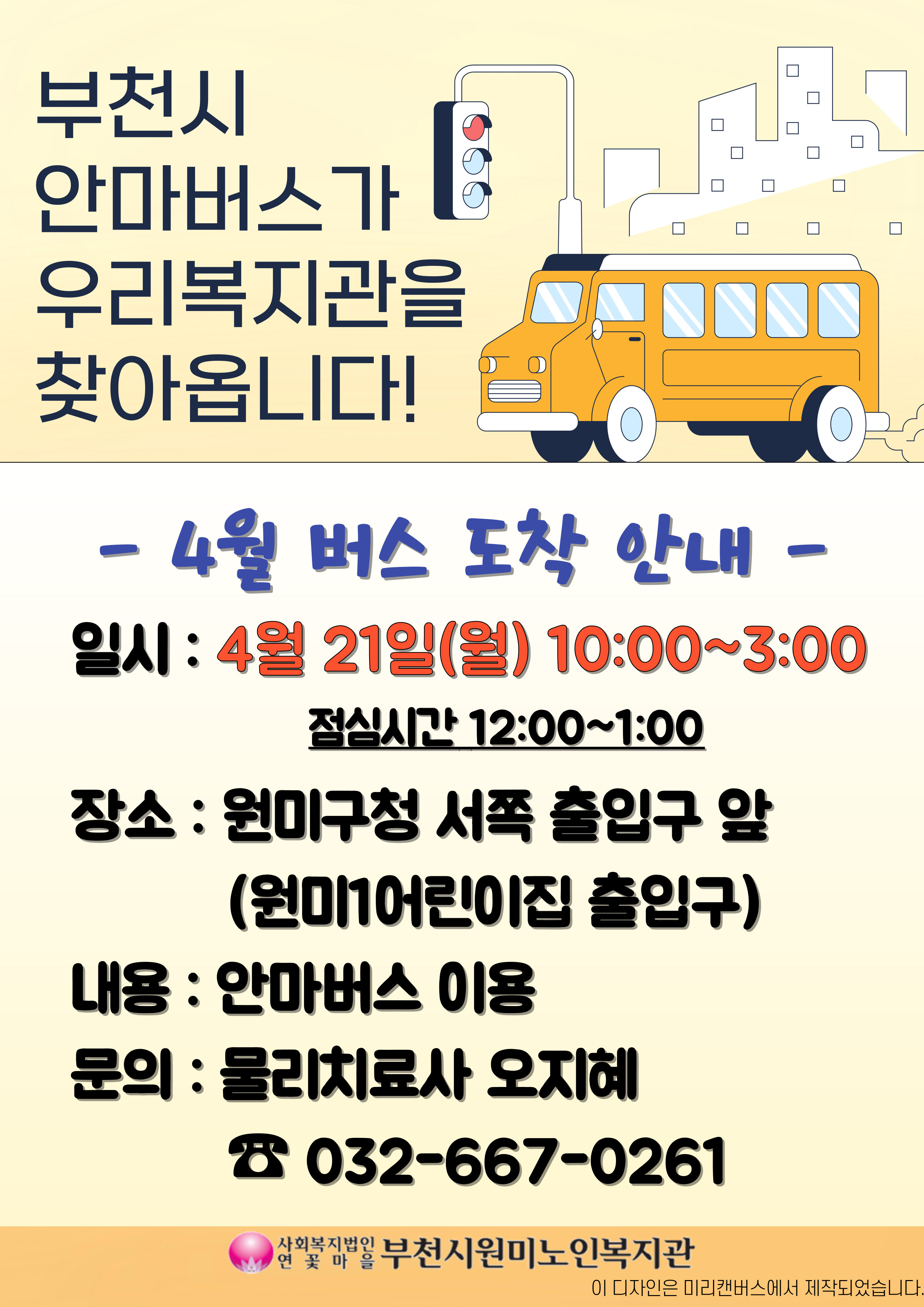 원미노인복지관 찾아가는 안마버스 참여 안내