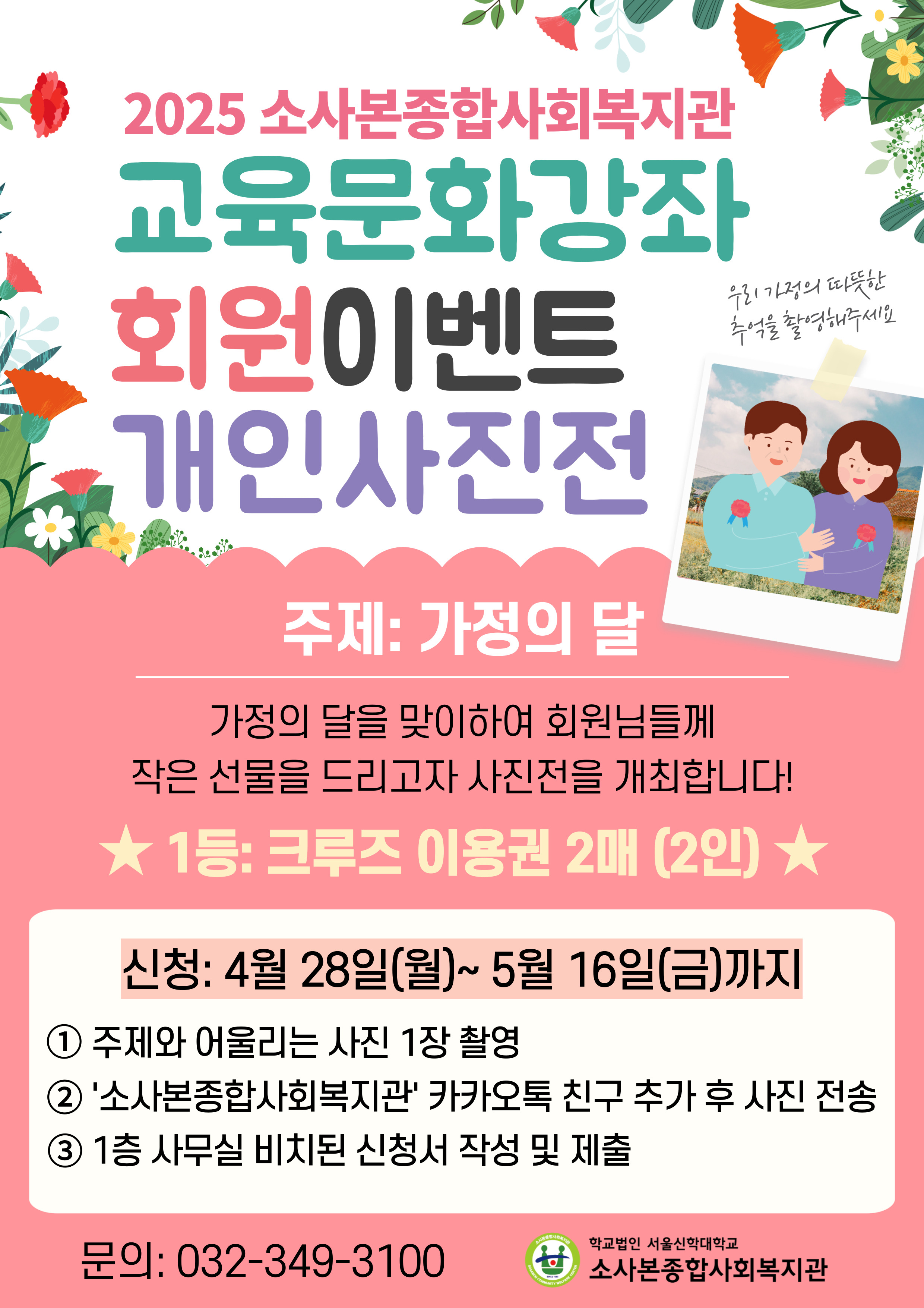 가정의 달 맞이 교육문화회원 대상 사진전 이벤트를 개최합니다