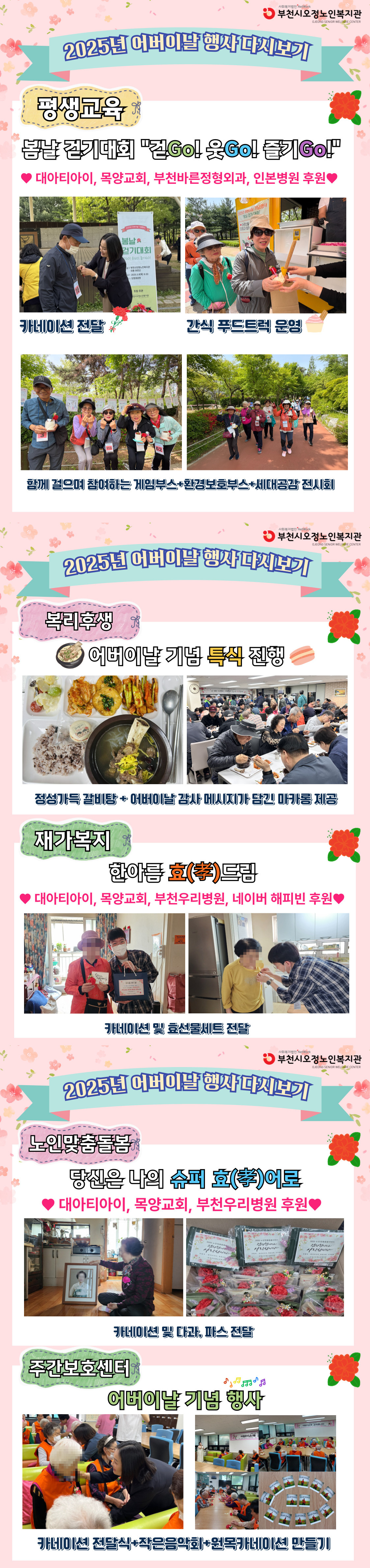 *이번 행사는 대아티아이, 목양교회, 부천우리병원, 부천바른정형외과, 부천인본병원, 네이버해피빈이함께하여 효행의 의미를 더할 수 있었습니다. 감사합니다.