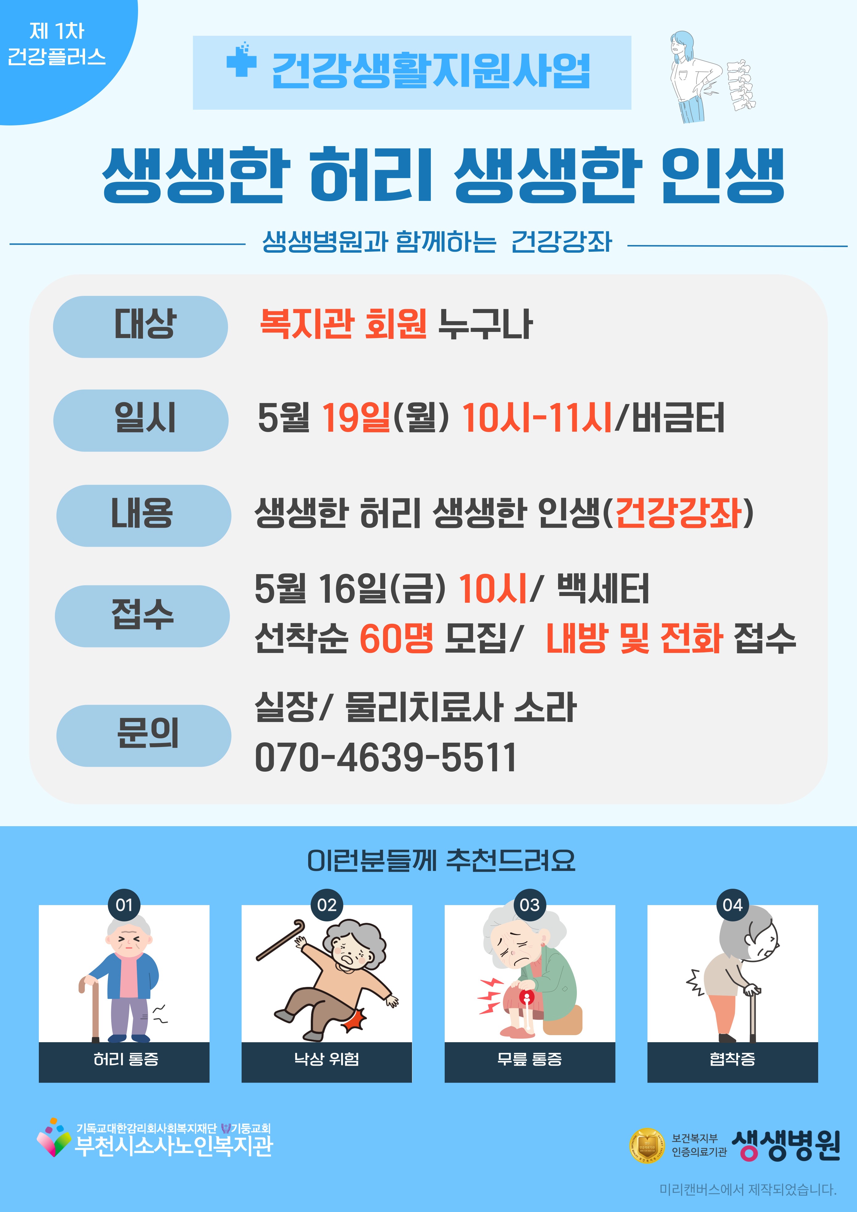 어르신들의 활기찬 일상과 건강한 관절 관리를 위한 『1차 건강플러스 프로그램』 참여자를 모집합니다.
