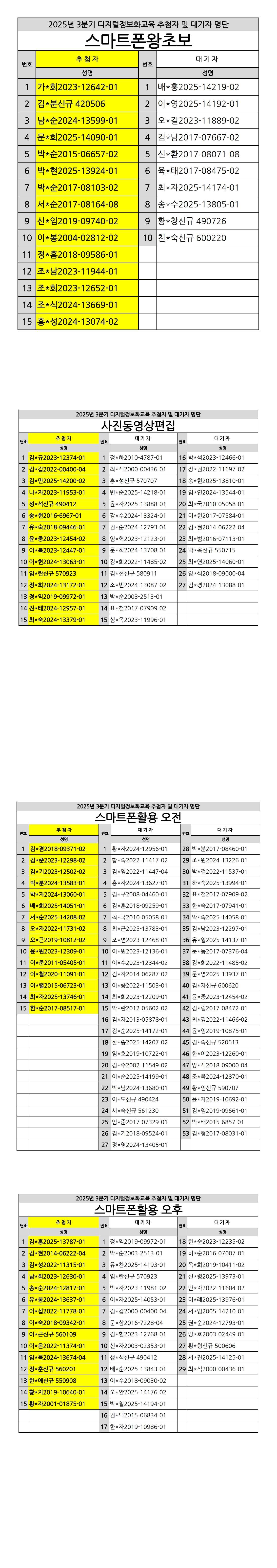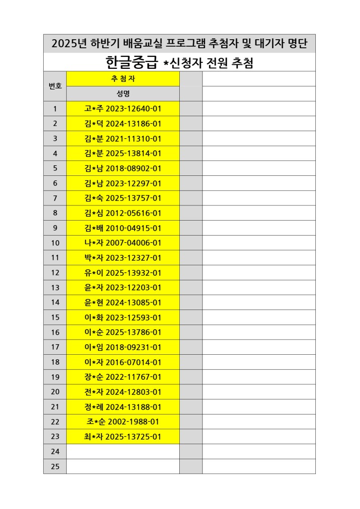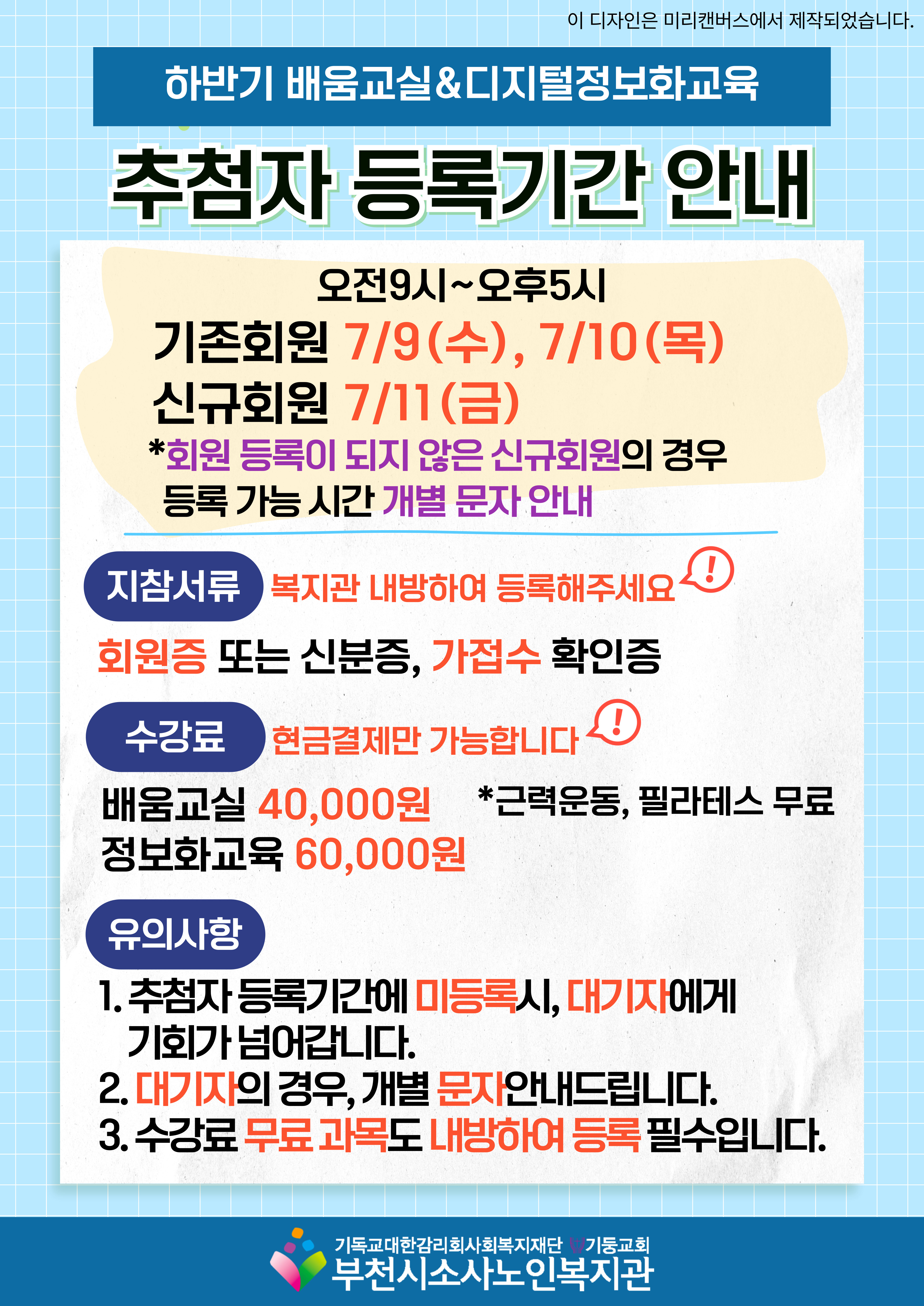 [노년사회화교육사업] 2025년 하반기 배움교실 & 3분기 디지털정보화교육 추첨 결과 안내
