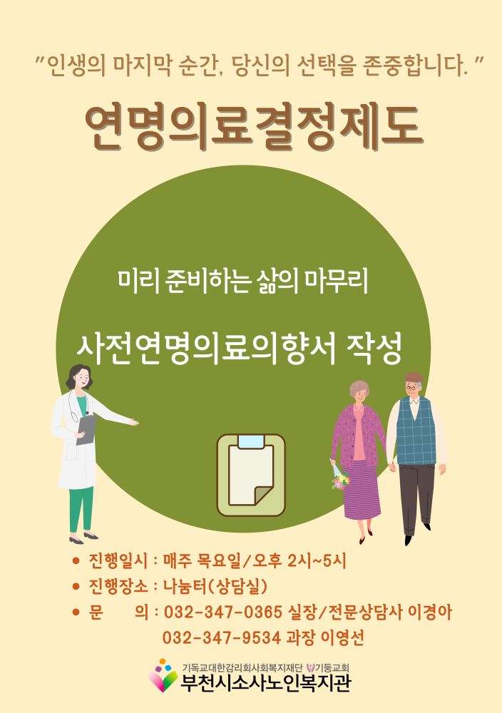 본 기관은 사전연명의료의향서 등록기관으로 지정되었습니다.