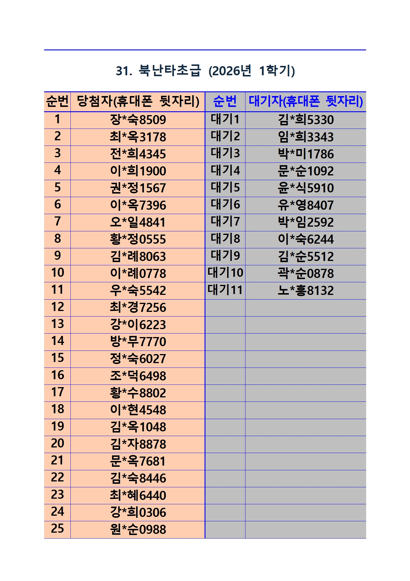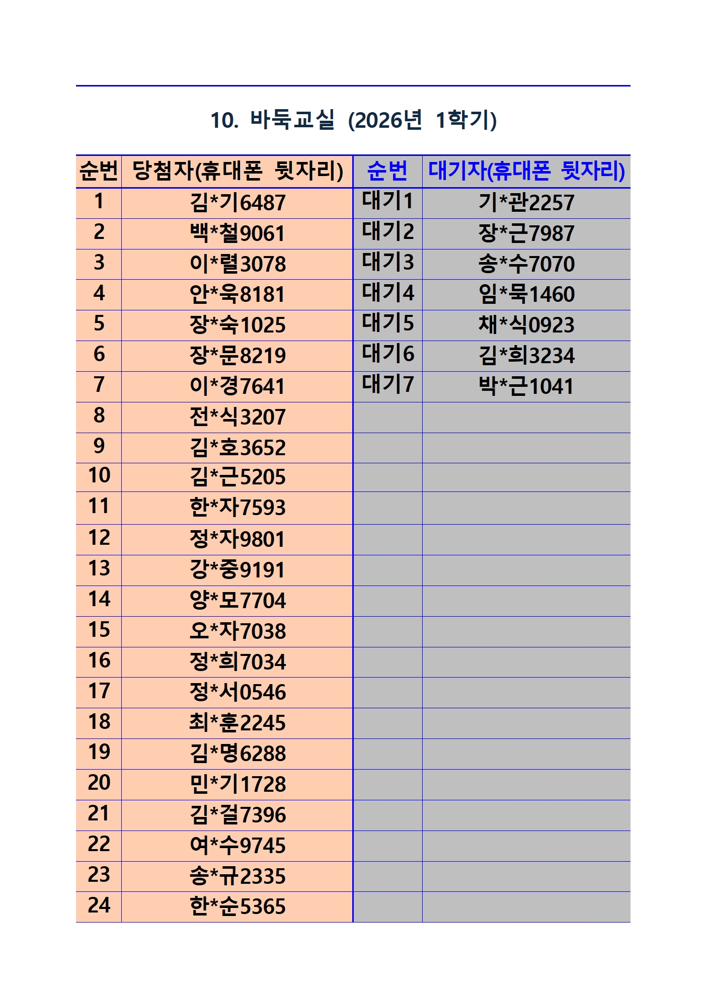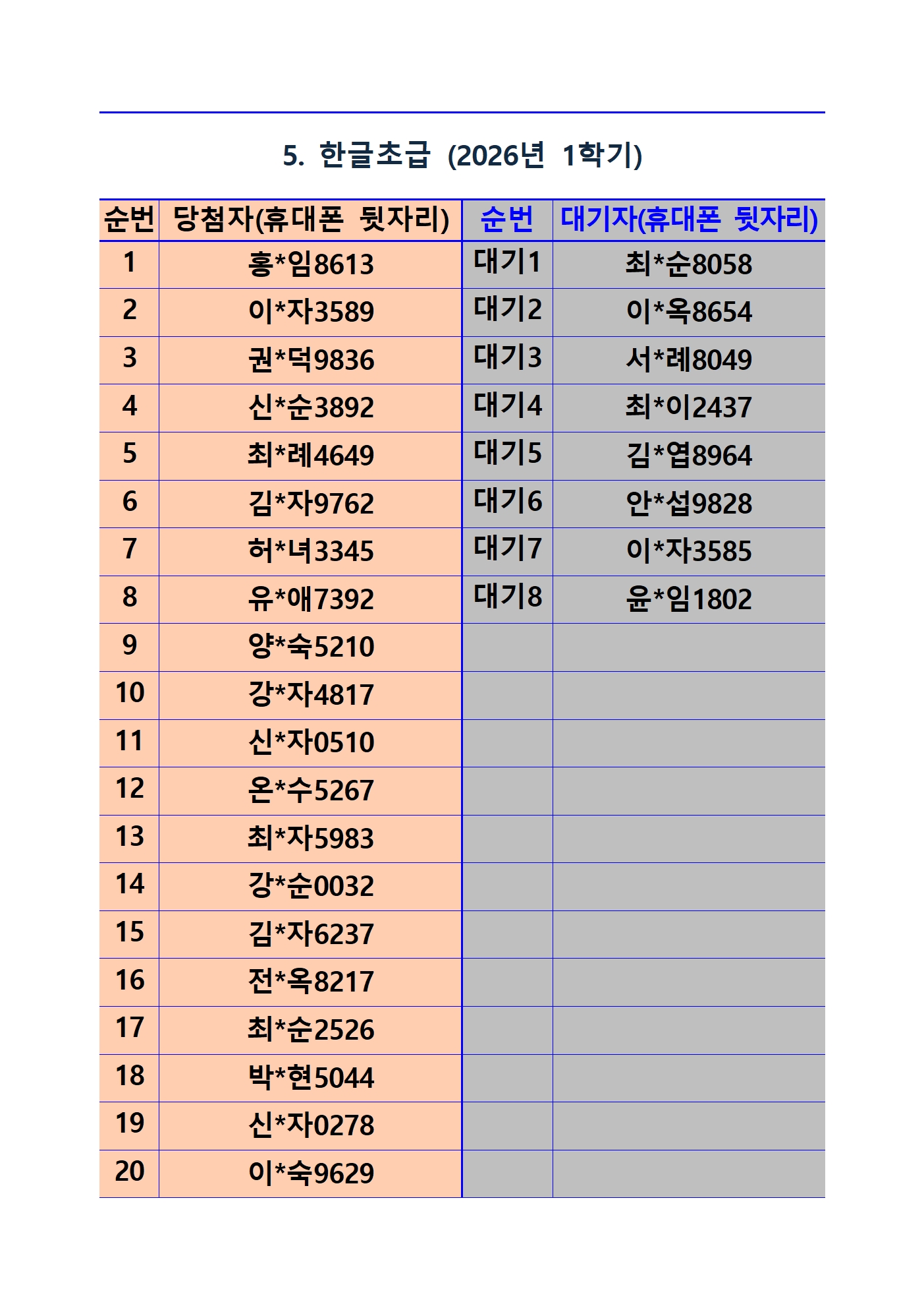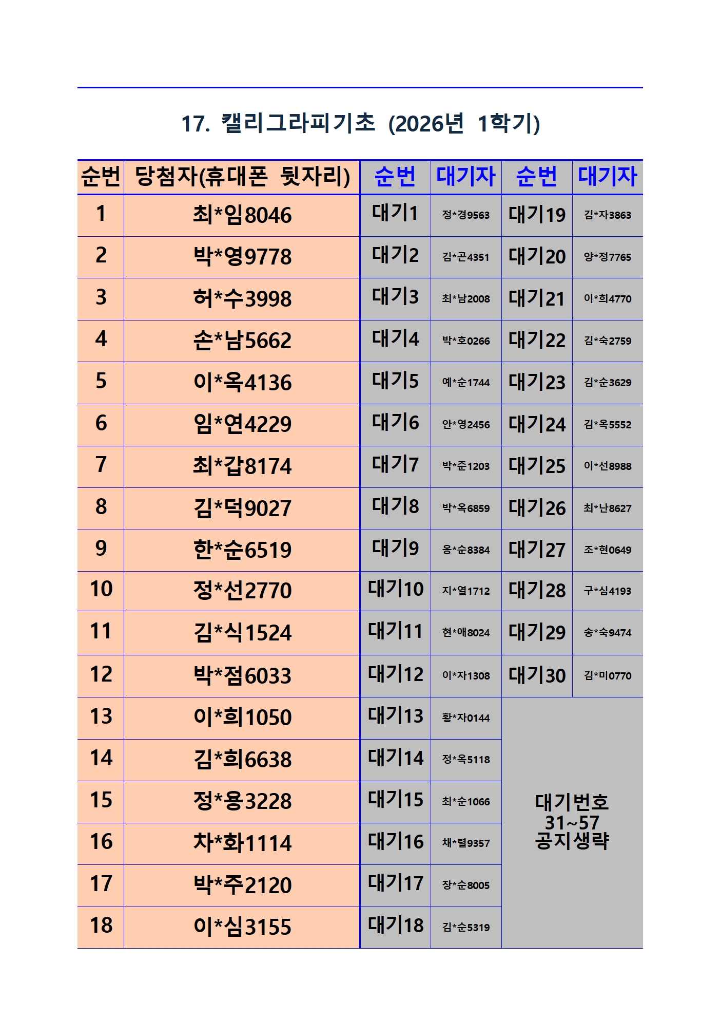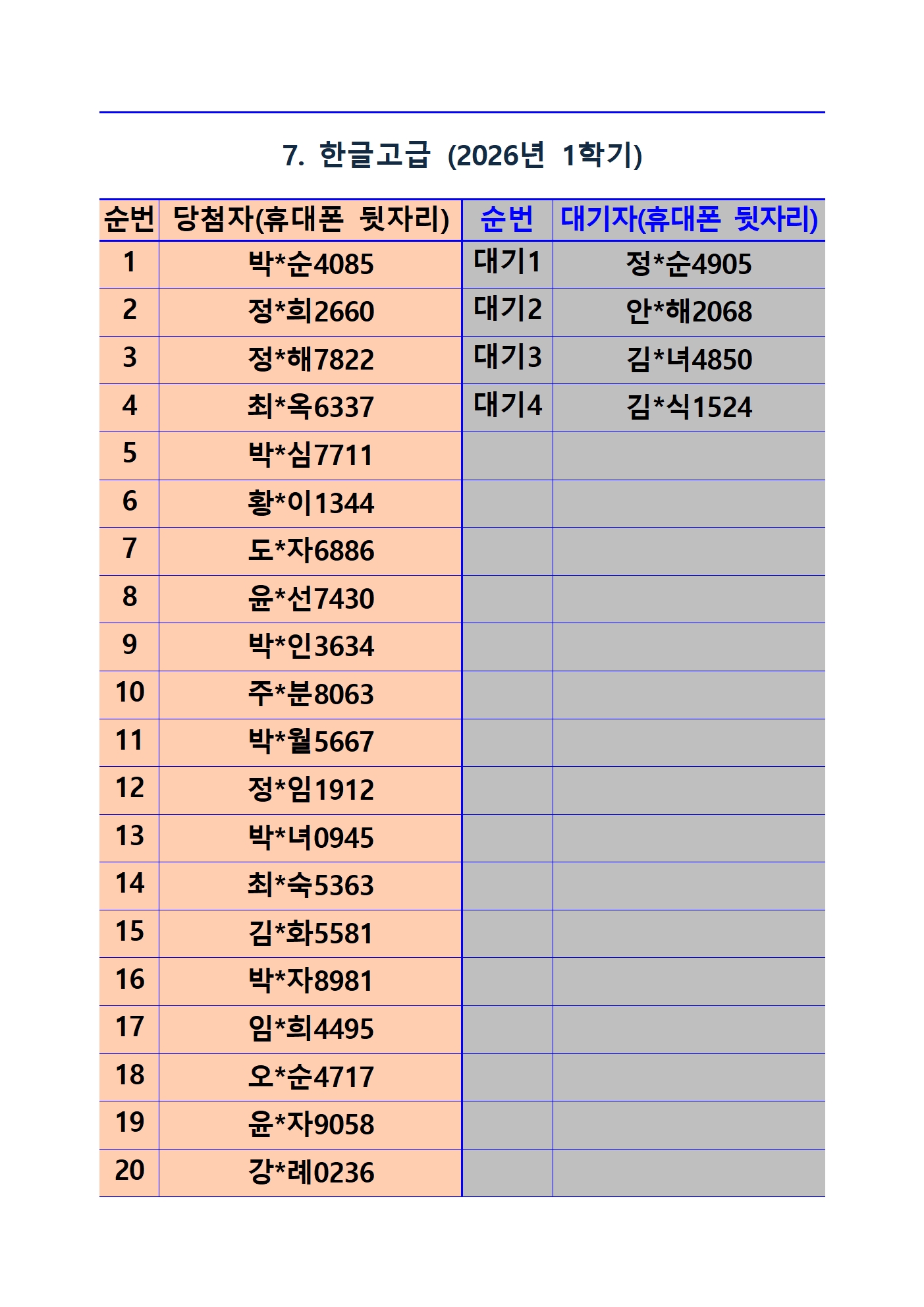 *사전접수자 전원 등록 가능 과목