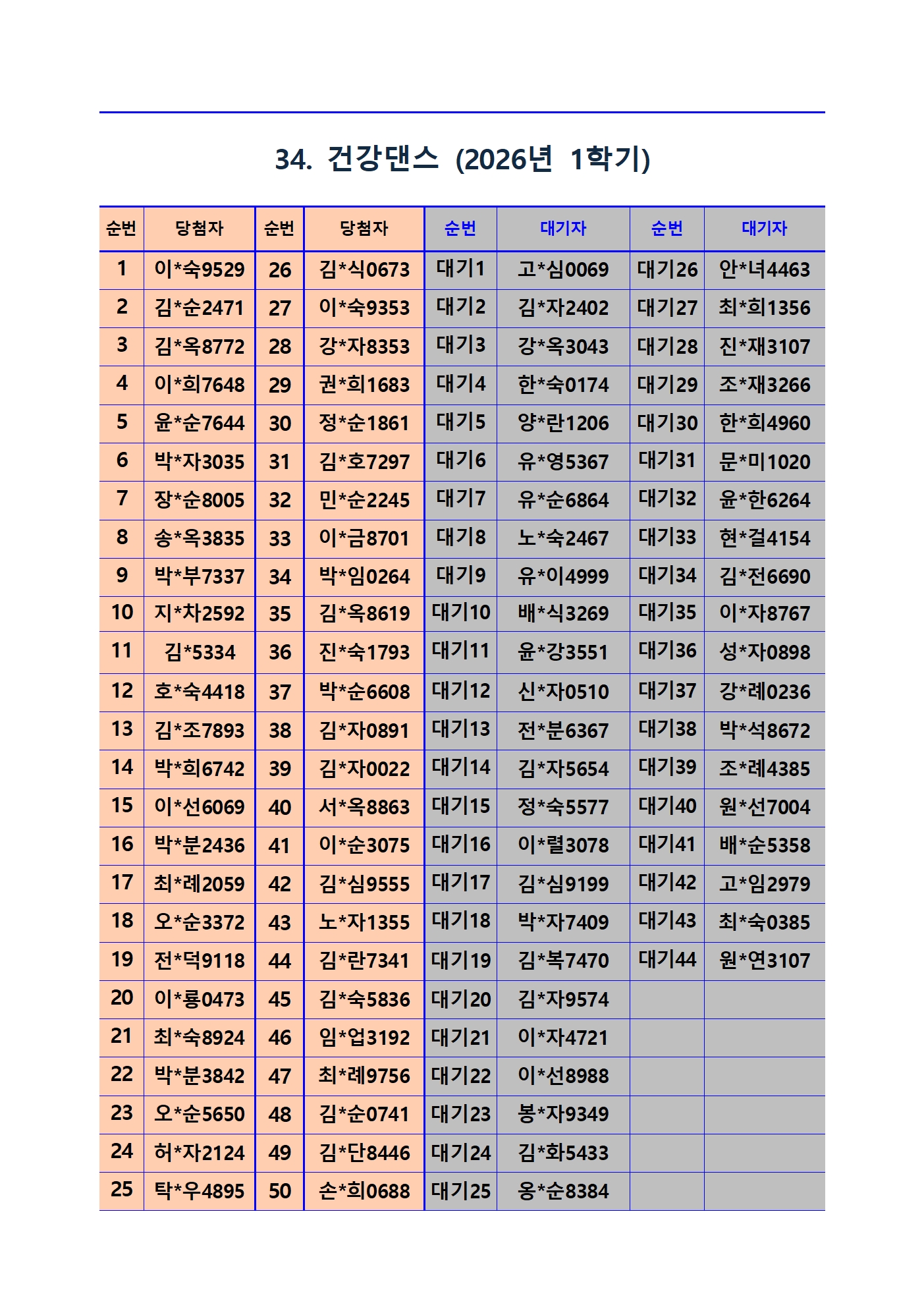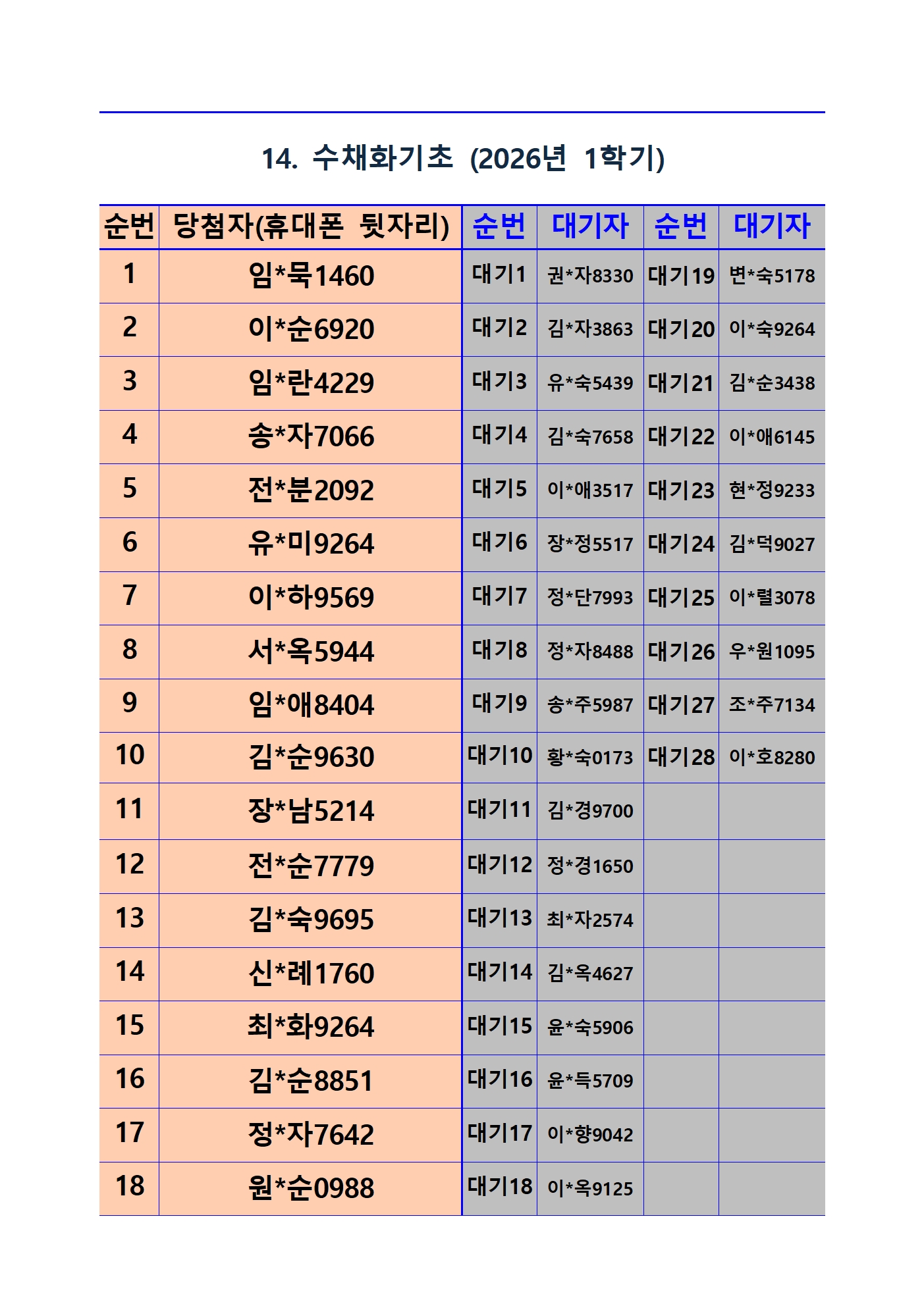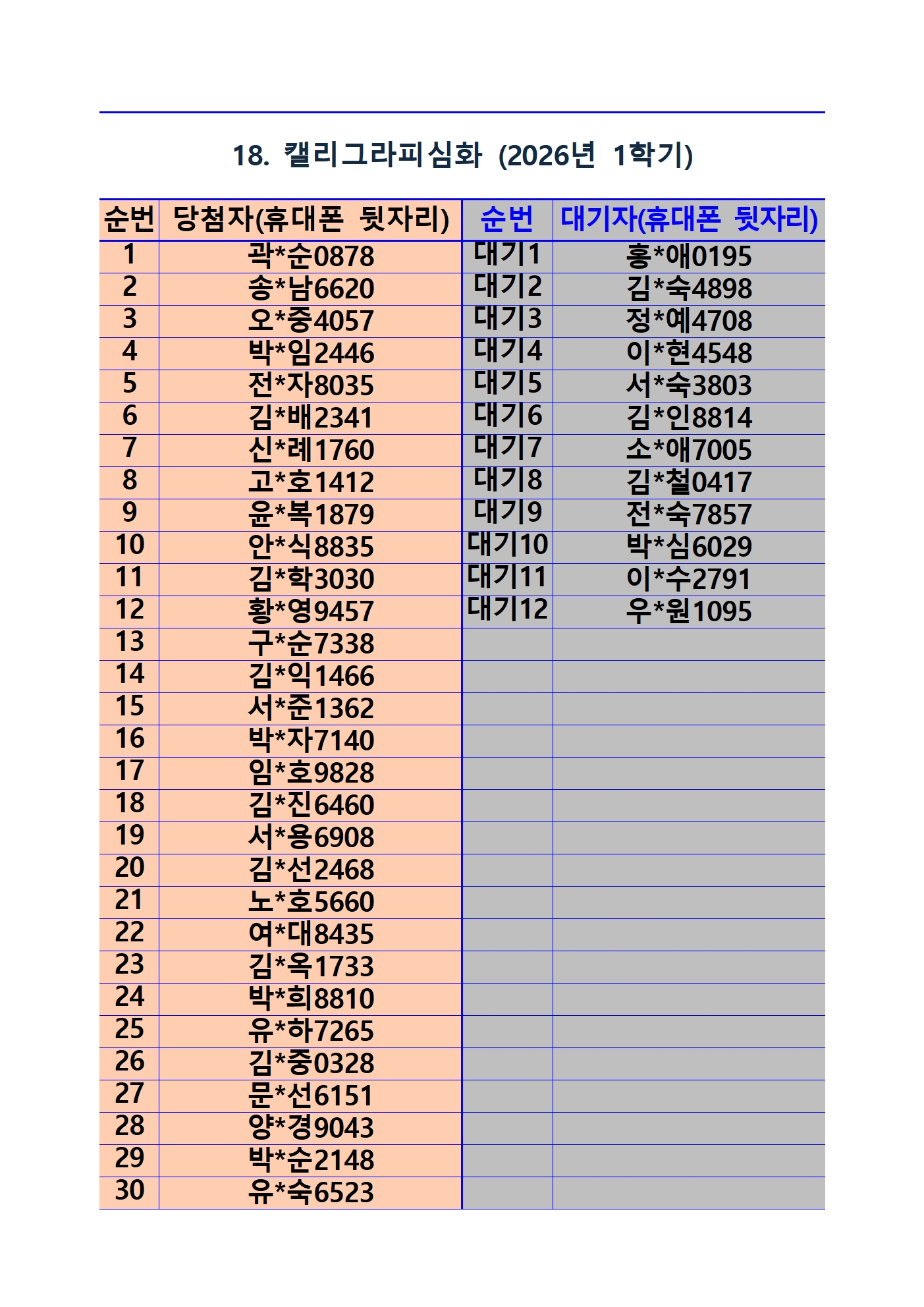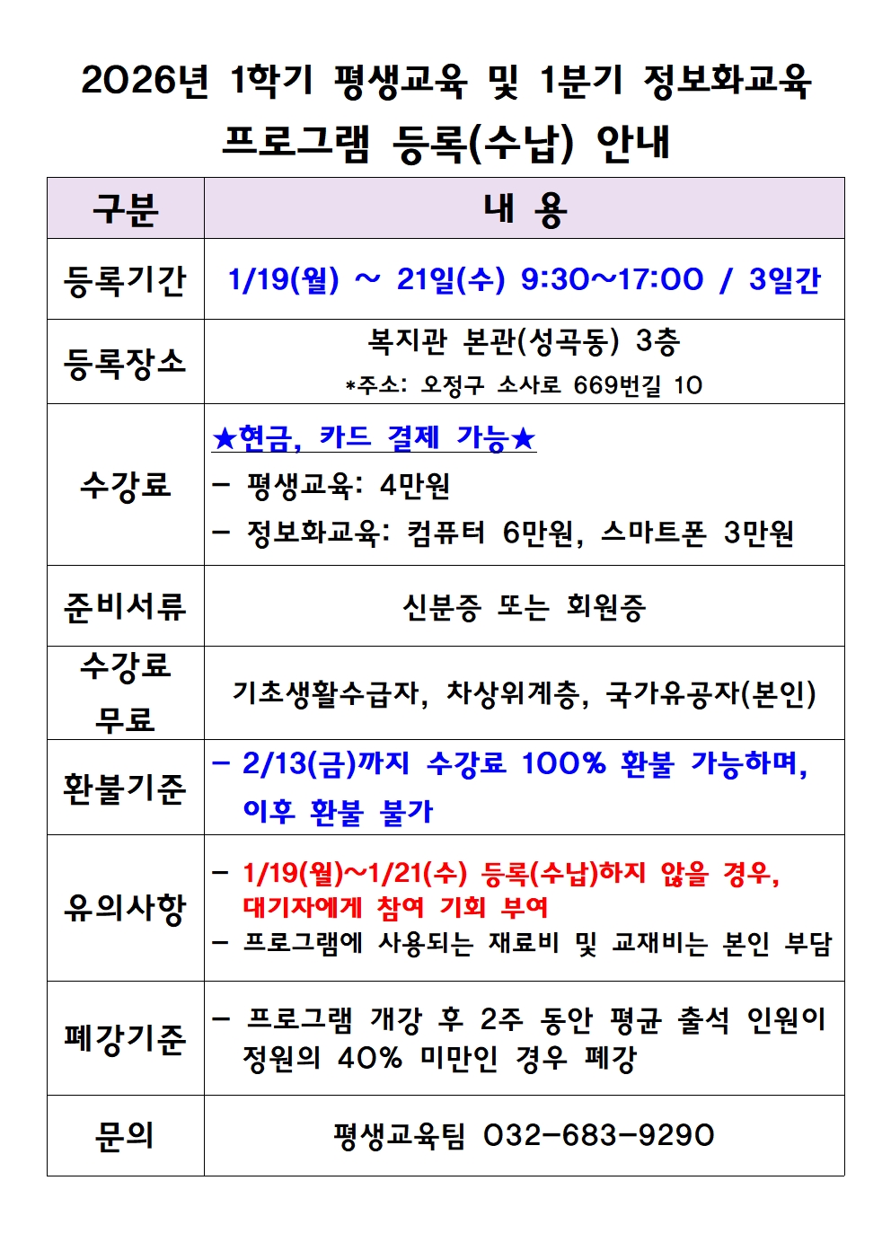 2026년 1학기 평생교육 및 1분기 정보화교육 추첨 결과 및 등록(수납) 안내