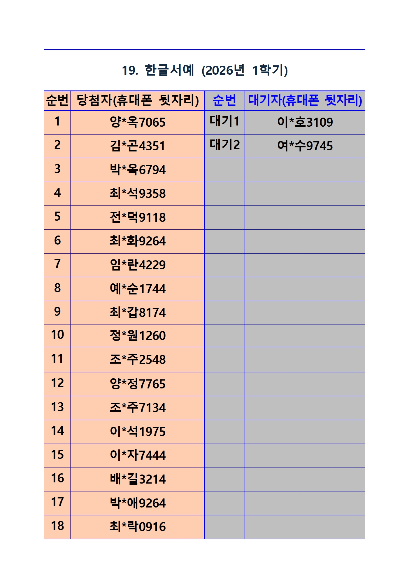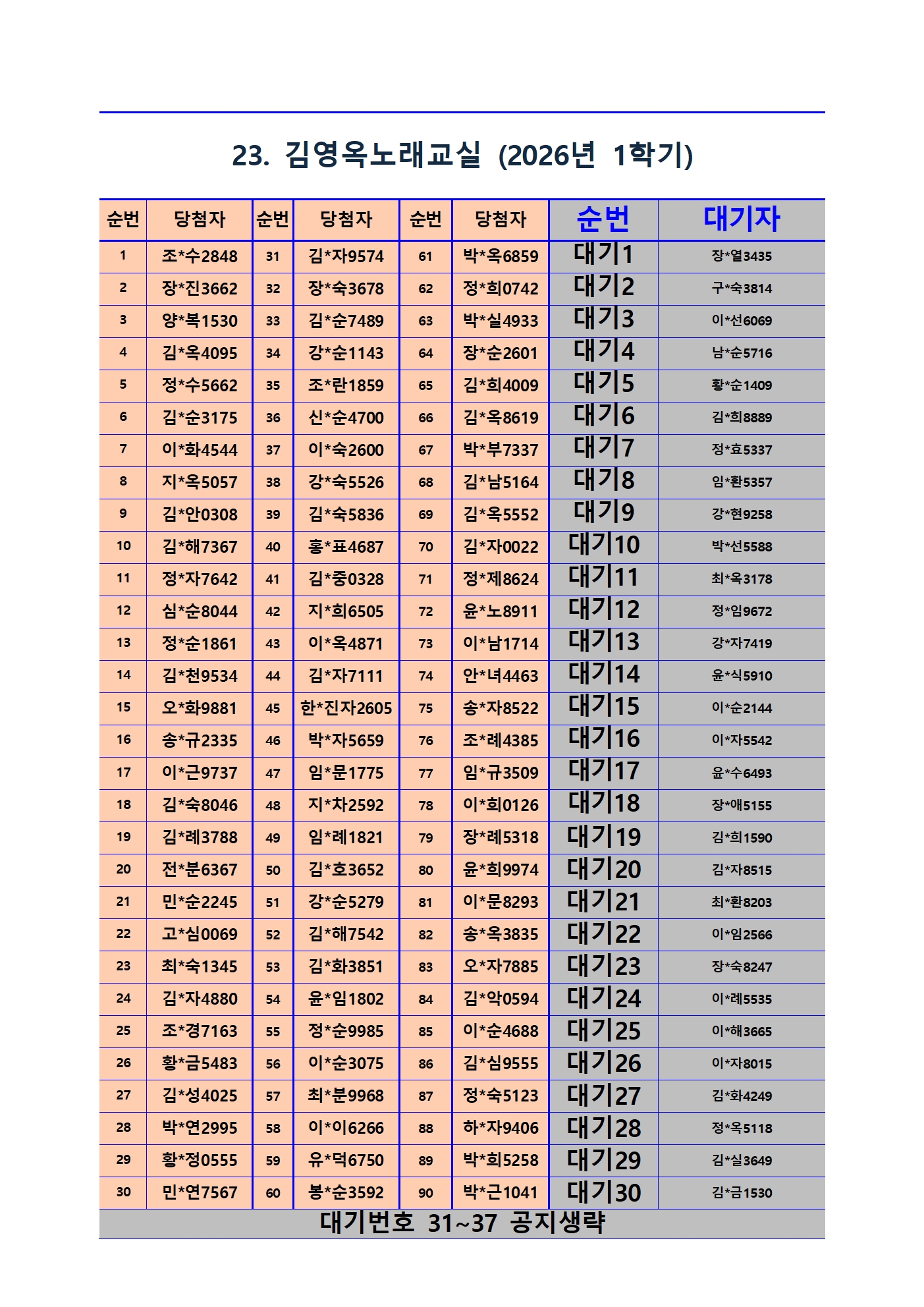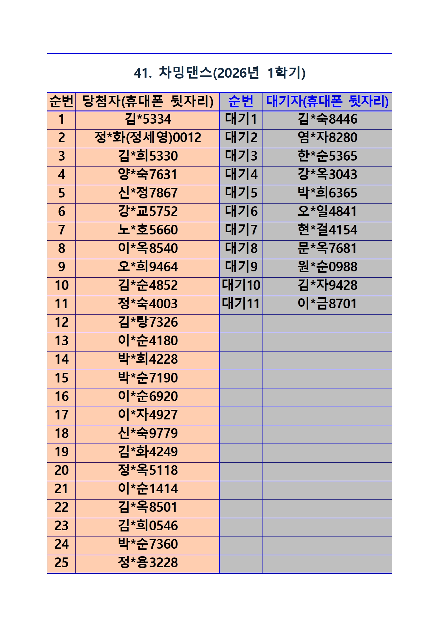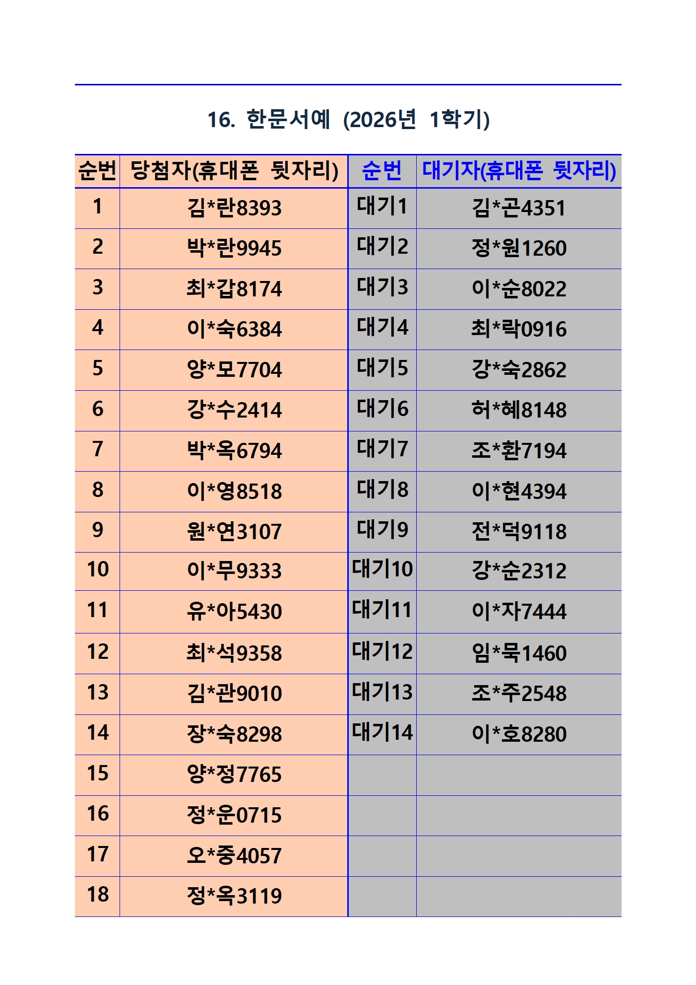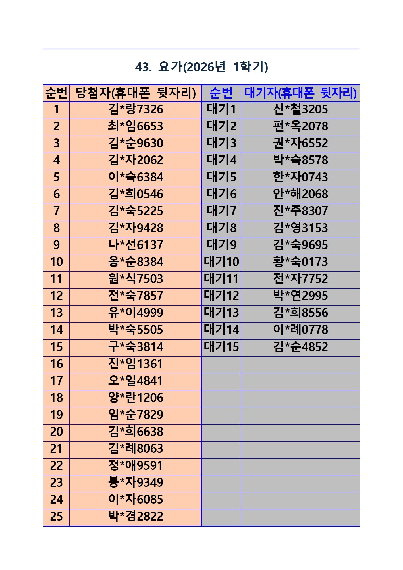 2026년 1학기 평생교육 및 1분기 정보화교육 추첨 결과 및 등록(수납) 안내