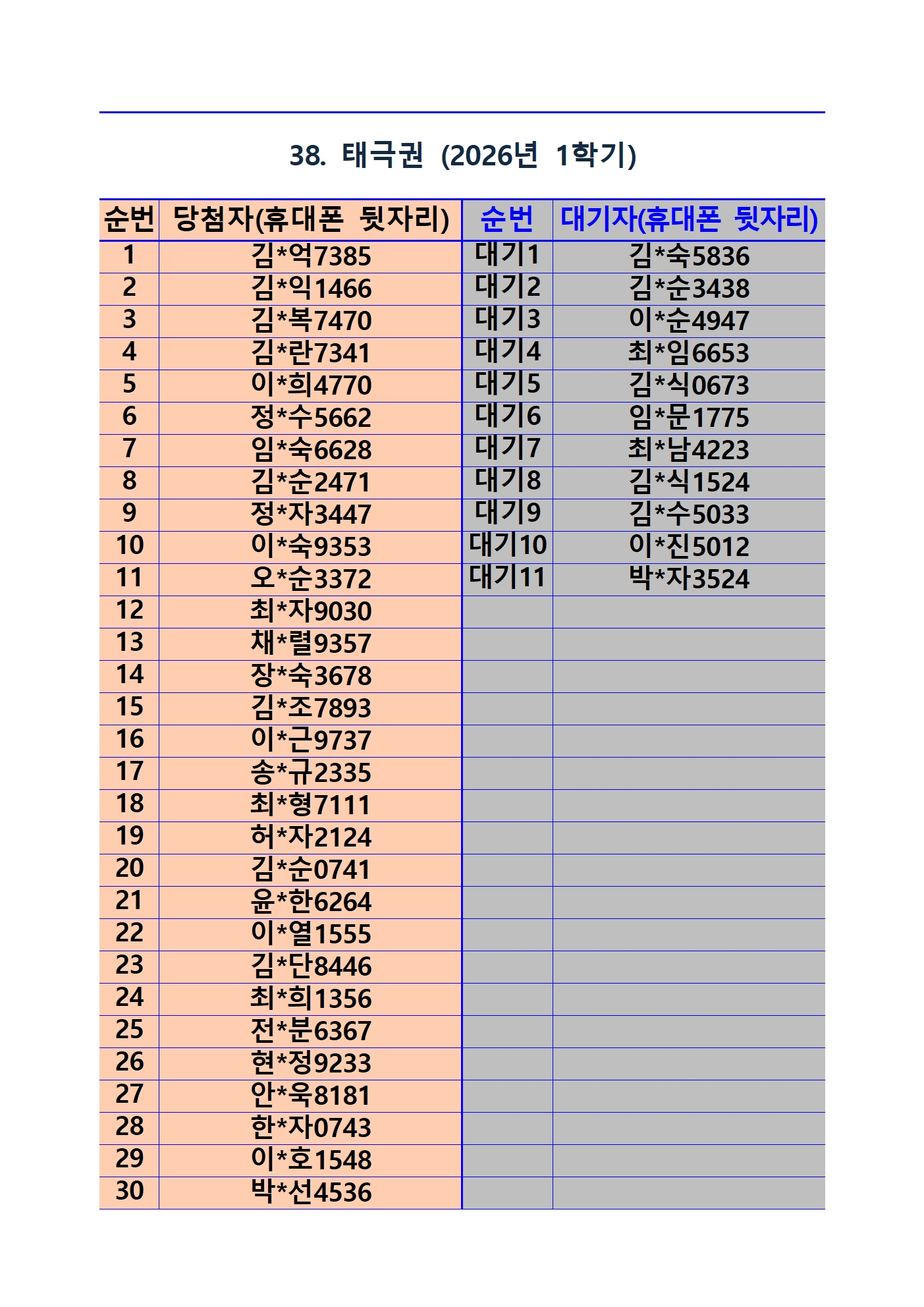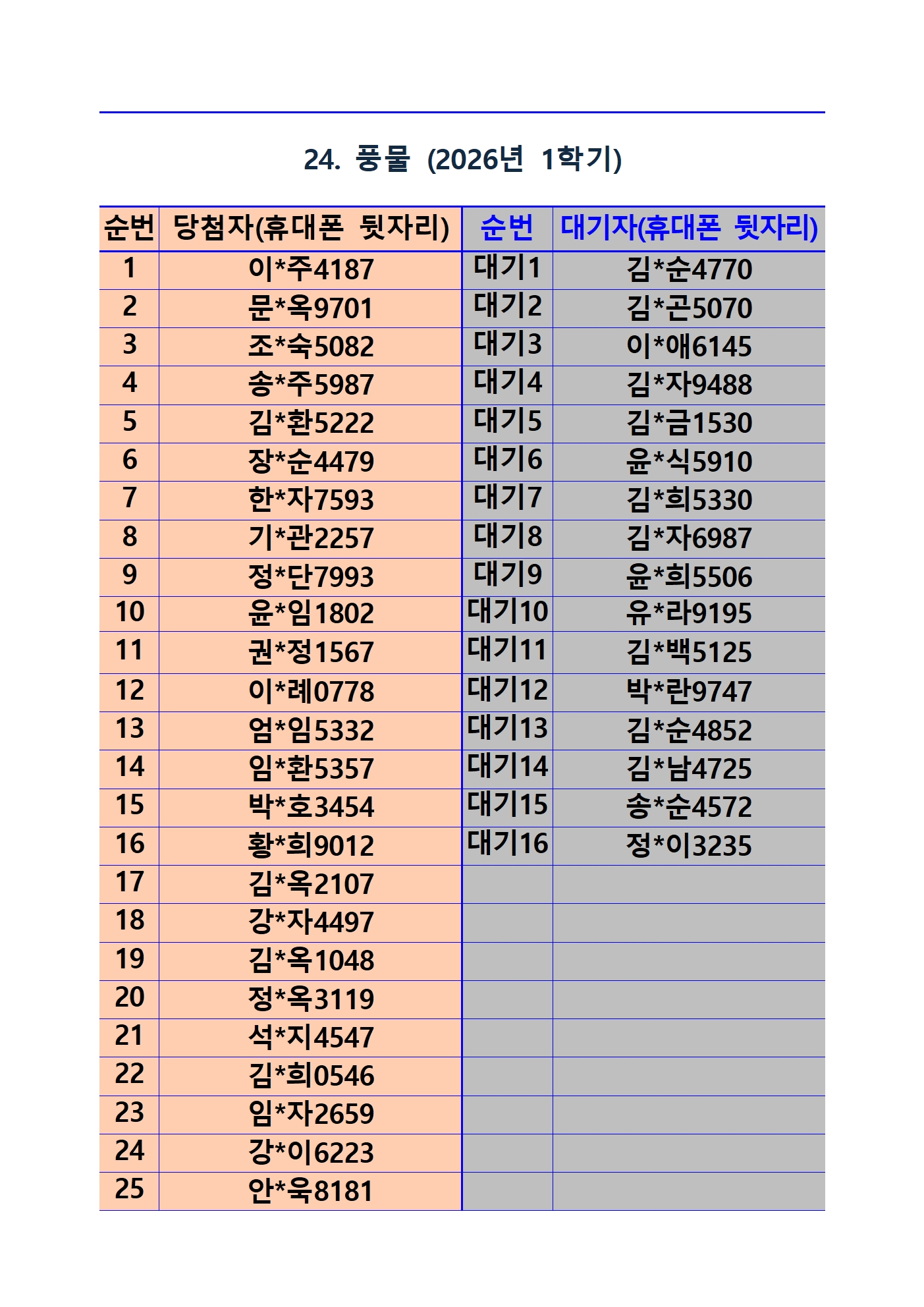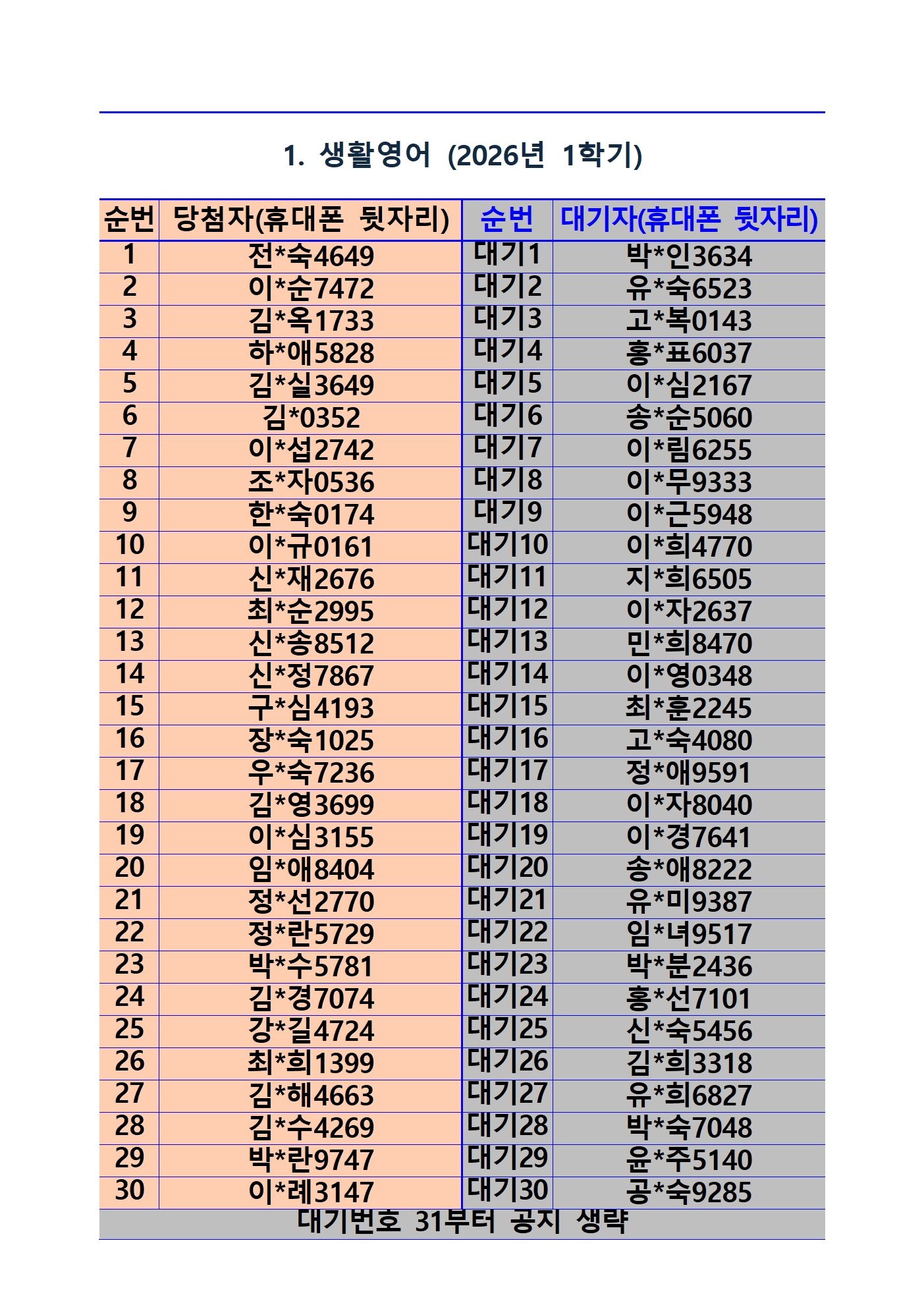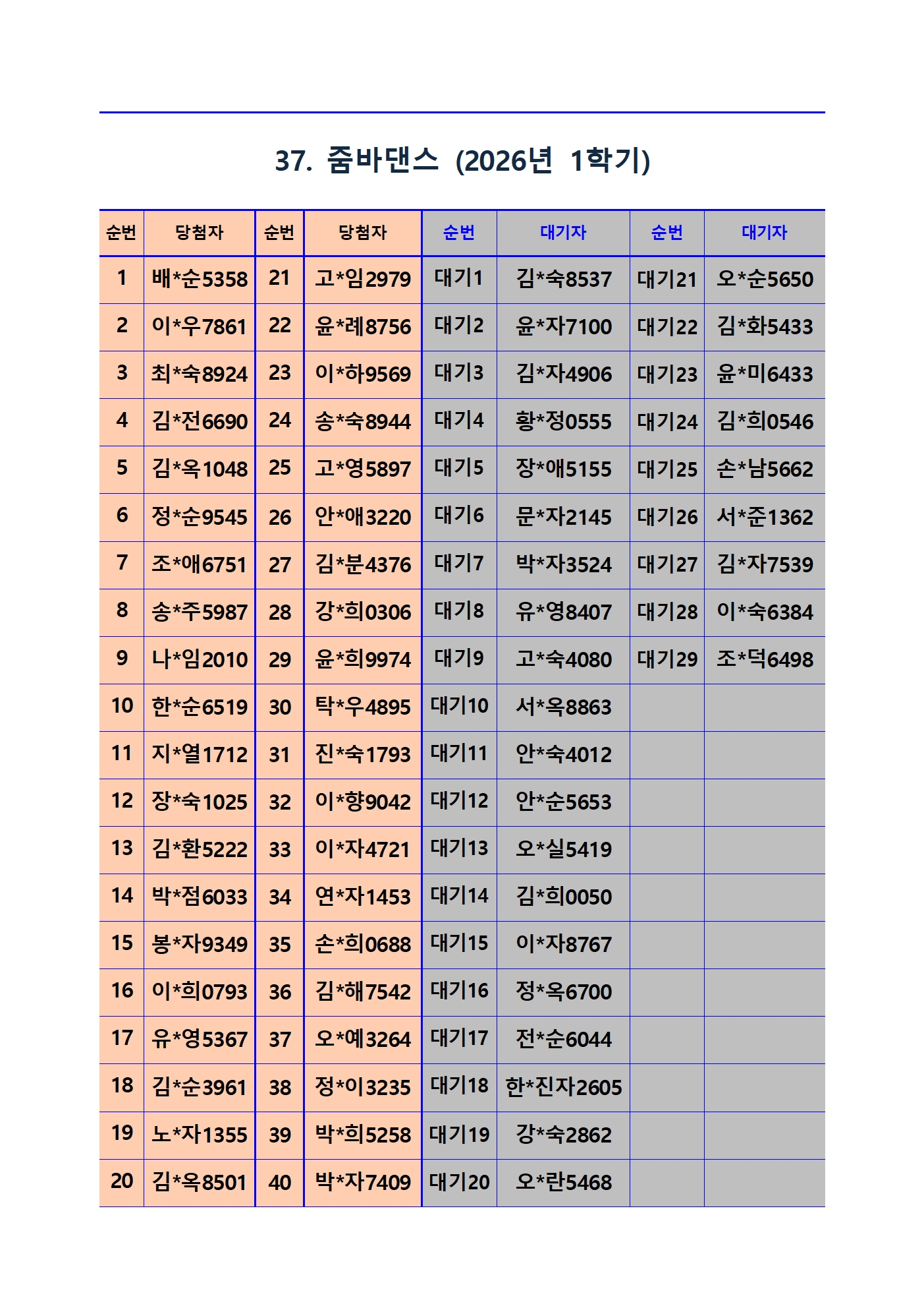 2026년 1학기 평생교육 및 1분기 정보화교육 추첨 결과 및 등록(수납) 안내