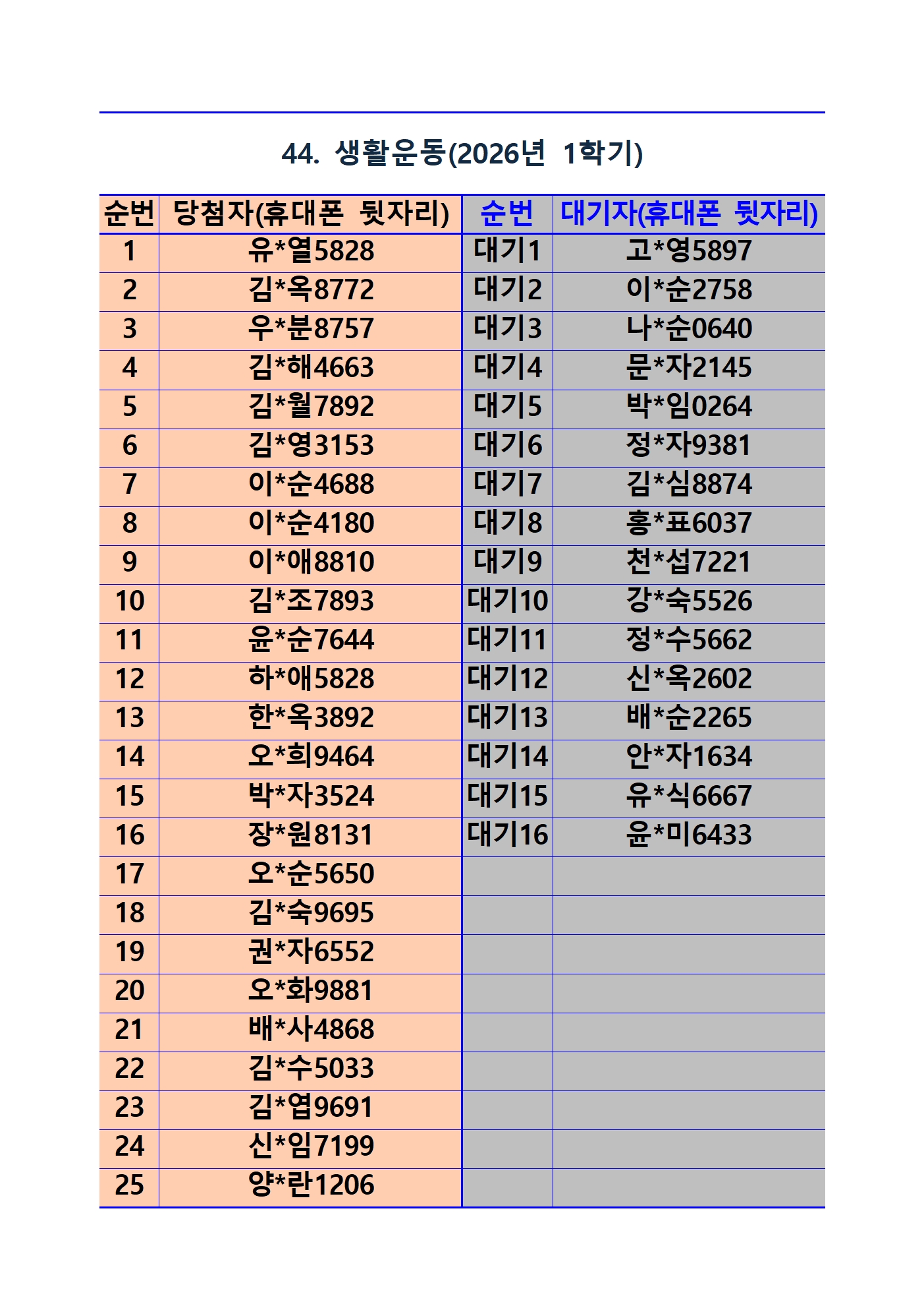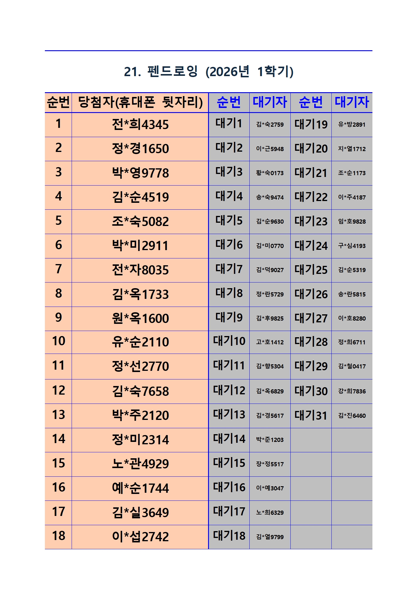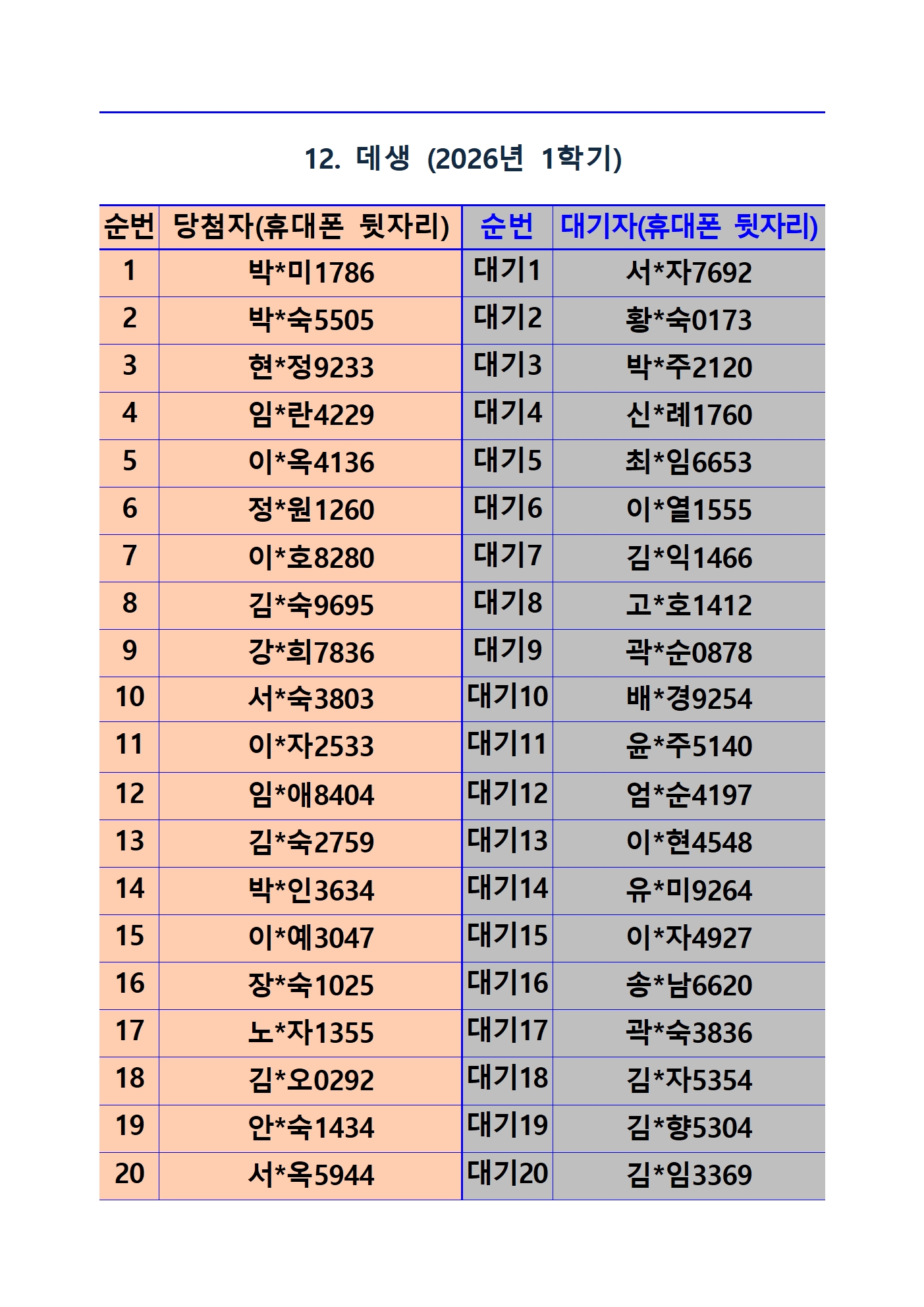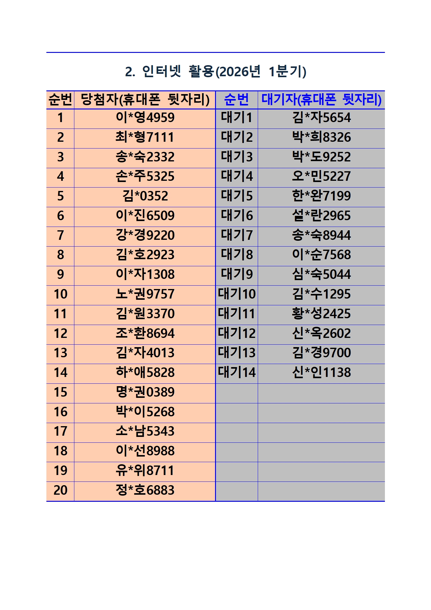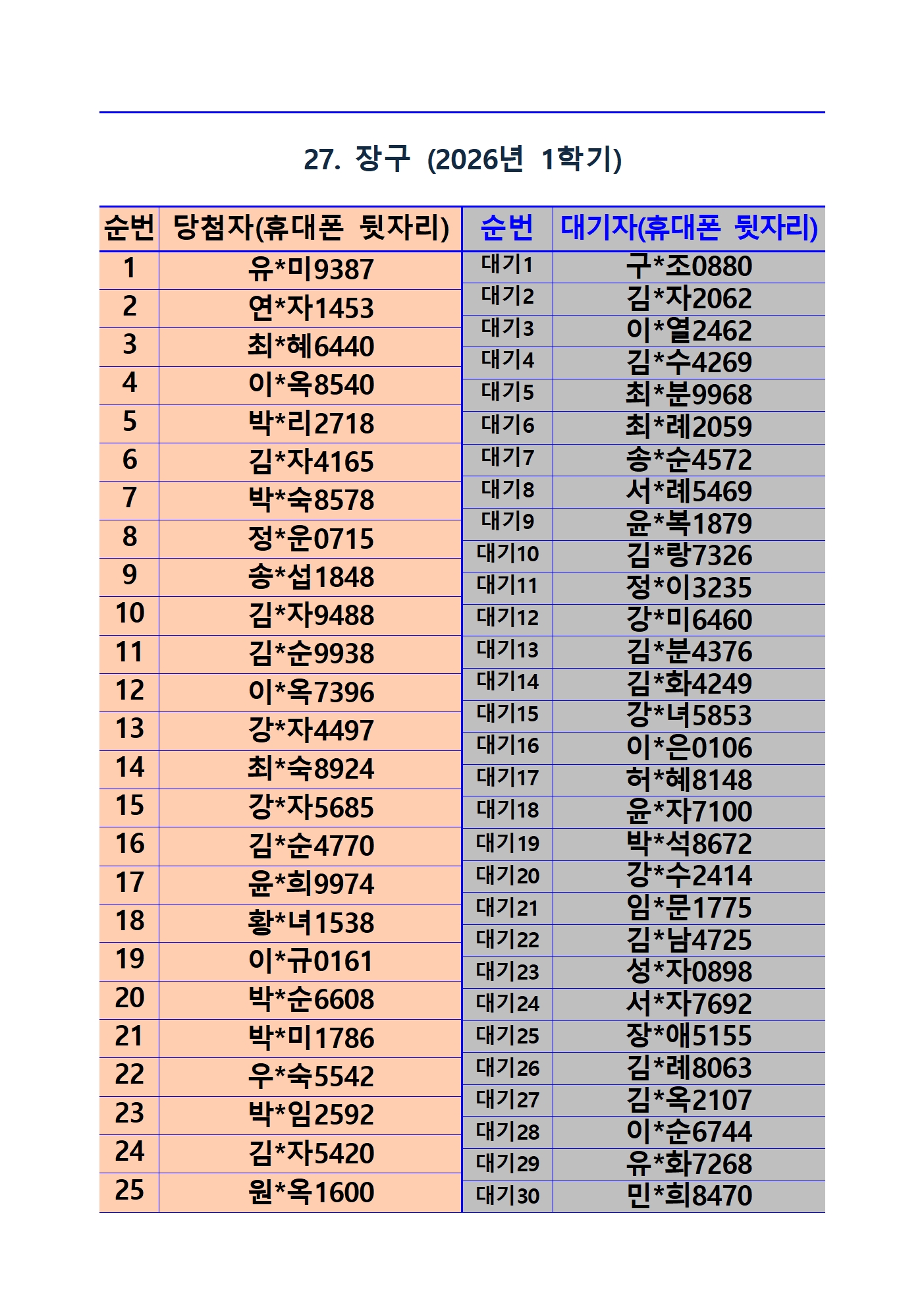 2026년 1학기 평생교육 및 1분기 정보화교육 추첨 결과 및 등록(수납) 안내
