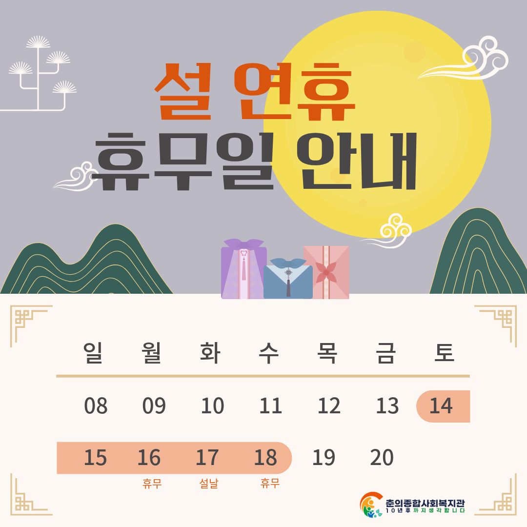 2026년 춘의종합사회복지관 설연휴 휴무일 안내