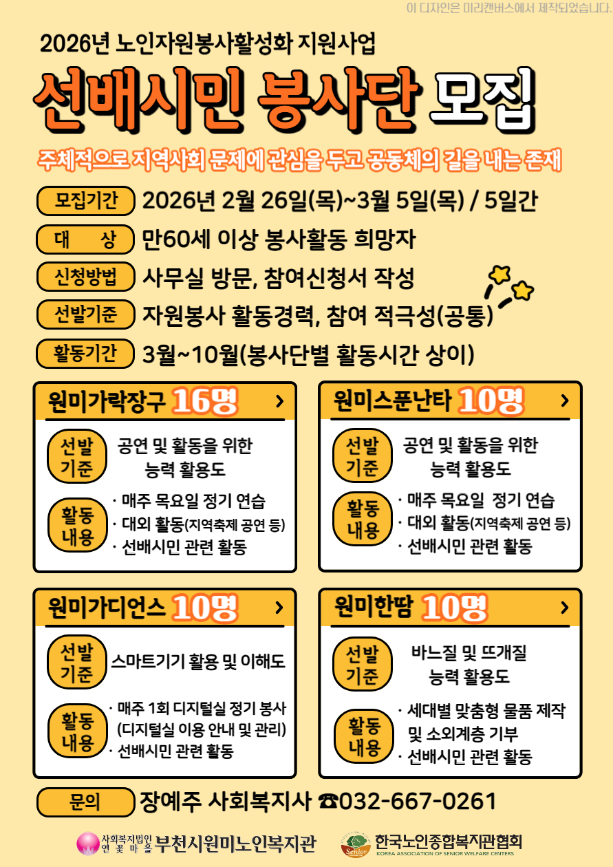 2026년 노인자원봉사 활성화 지원사업 <선배시민 봉사단> 모집