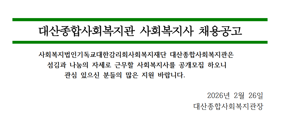 대산종합사회복지관 사회복지사 채용 공고