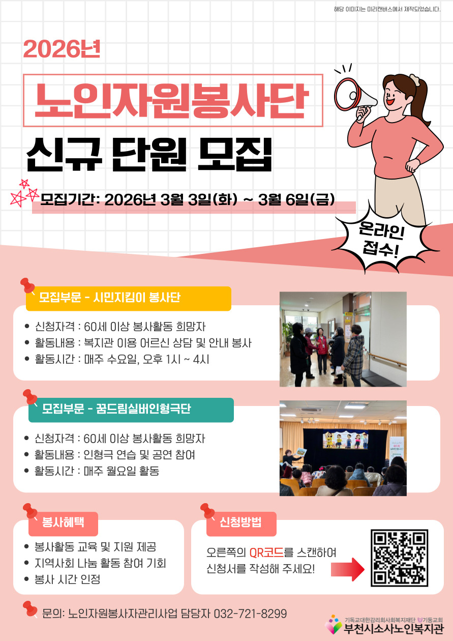 문의 : 노인자원봉사자관리사업 담당자 032-721-8299