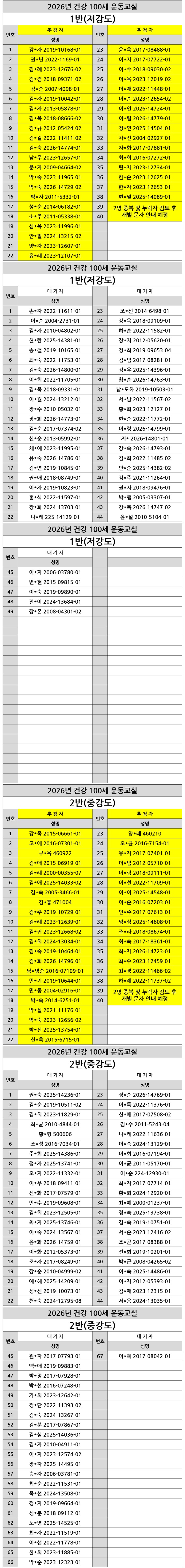 [노년사회화교육사업] 건강 100세 운동교실 추첨자 및 대기자 안내