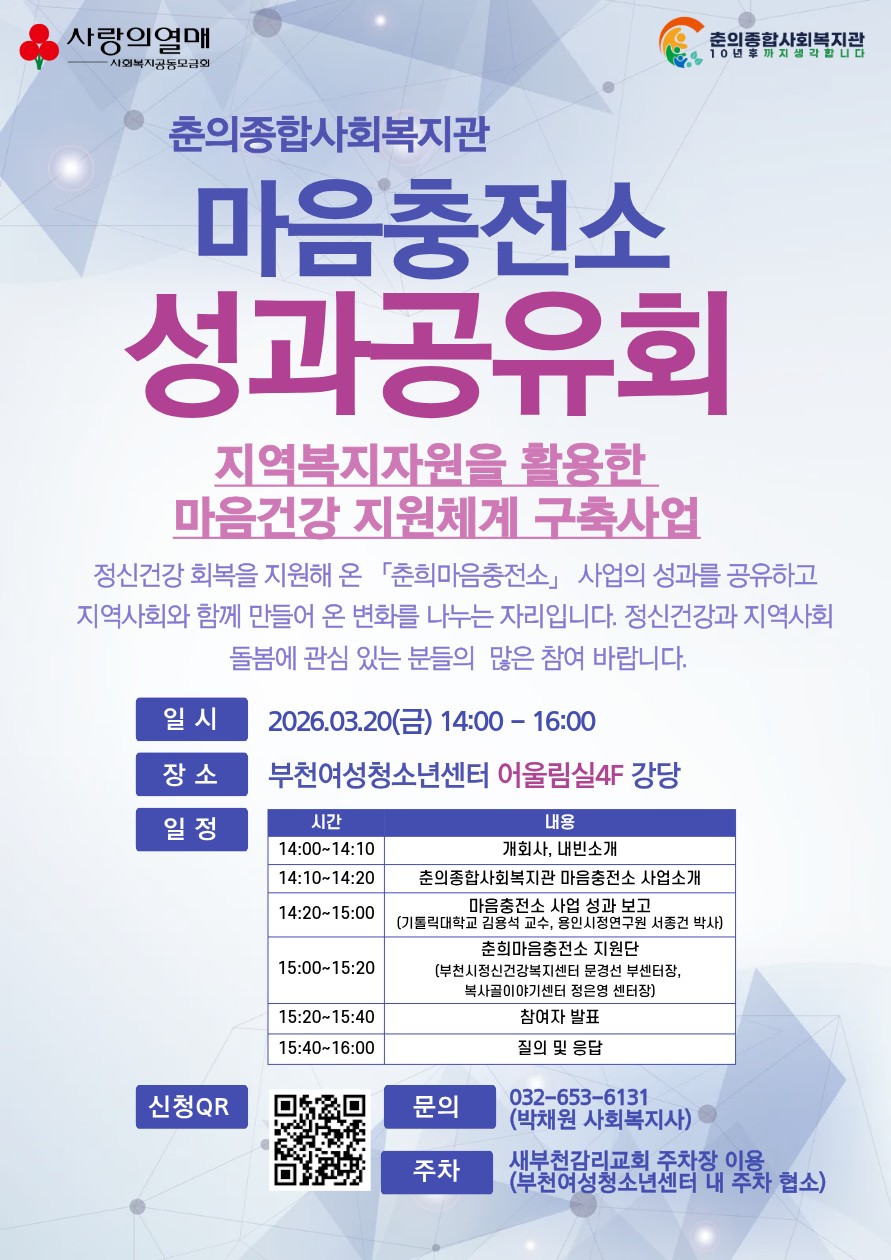 ▷ 춘의종합사회복지관 마음충전소 사업 소개