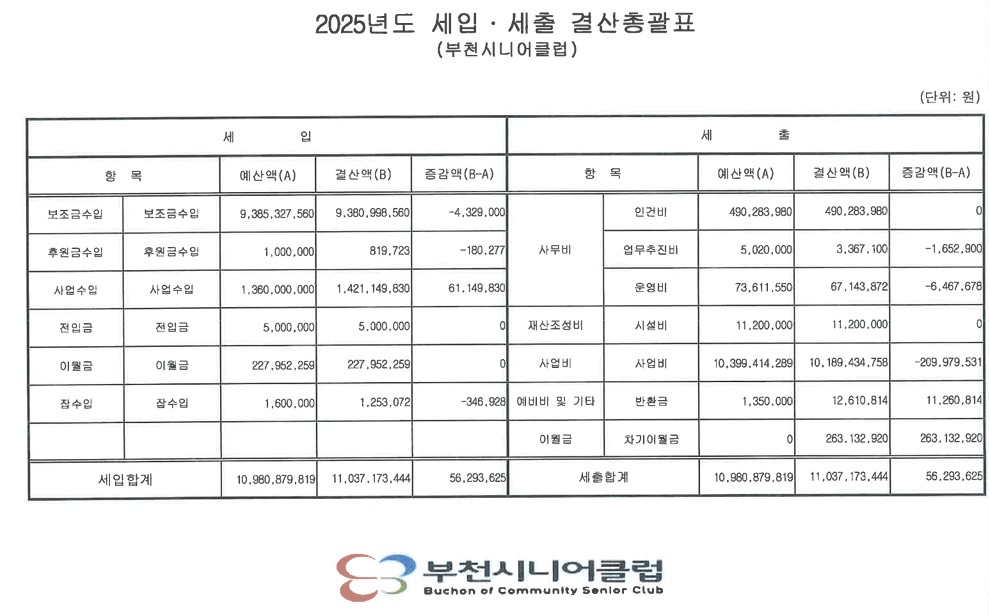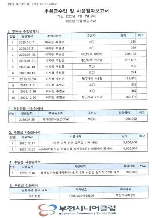 2025년 부천시니어클럽 결산(안) 및 후원금 수입 및 사용결과보고서 공고