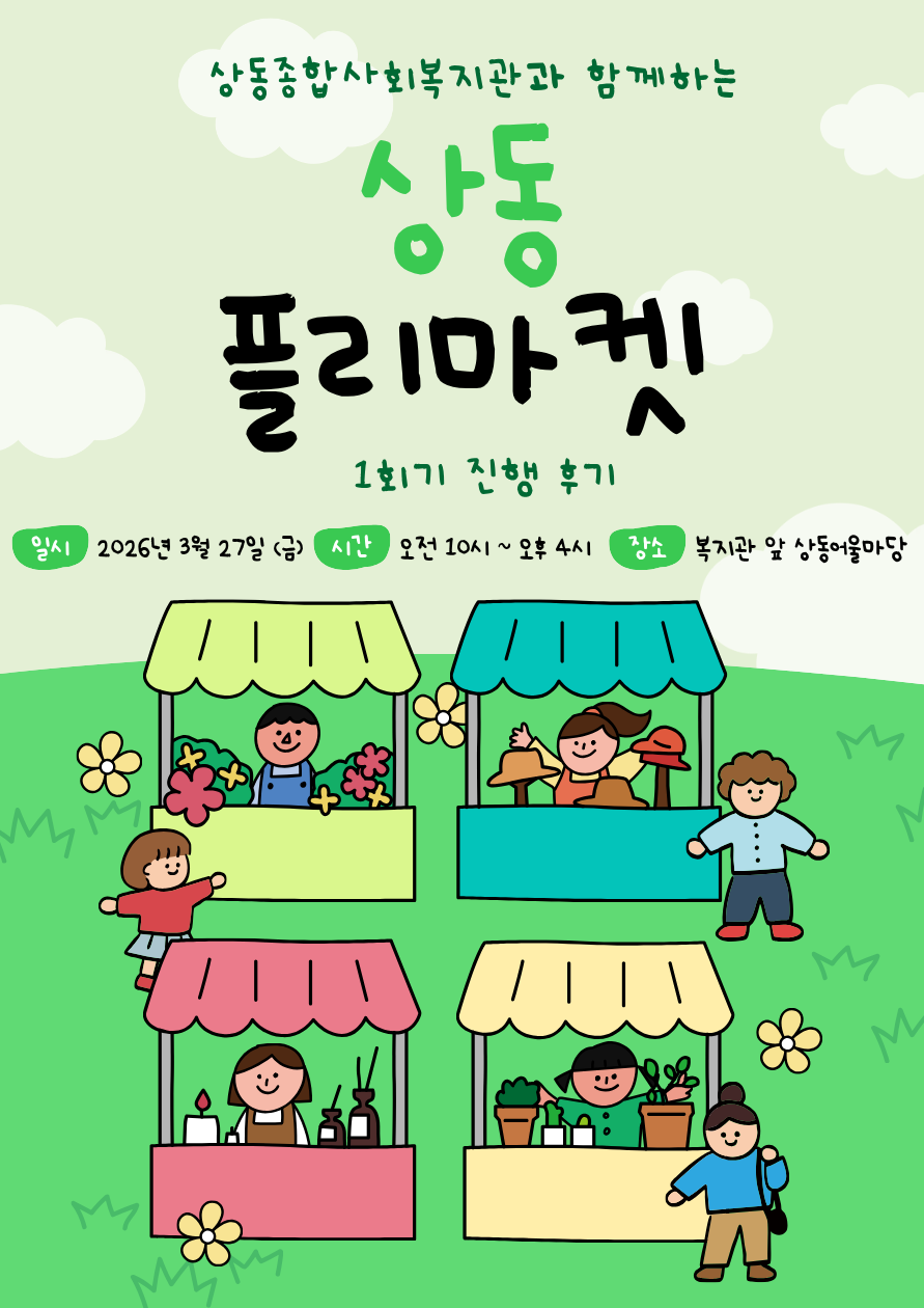 이번 행사를 시작으로 매주 금요일마다 여러분을 찾아갈 예정이니, 앞으로도 상동 플리마켓에 많은 관심과 참여 부탁드려요! 우리 매주 금요일에 만나요! 🙌