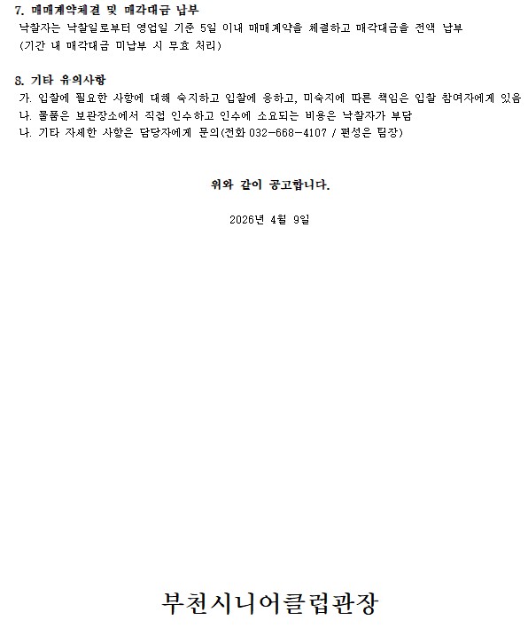 2026년도 부천시니어클럽 불용물품 매각 입찰 재공고