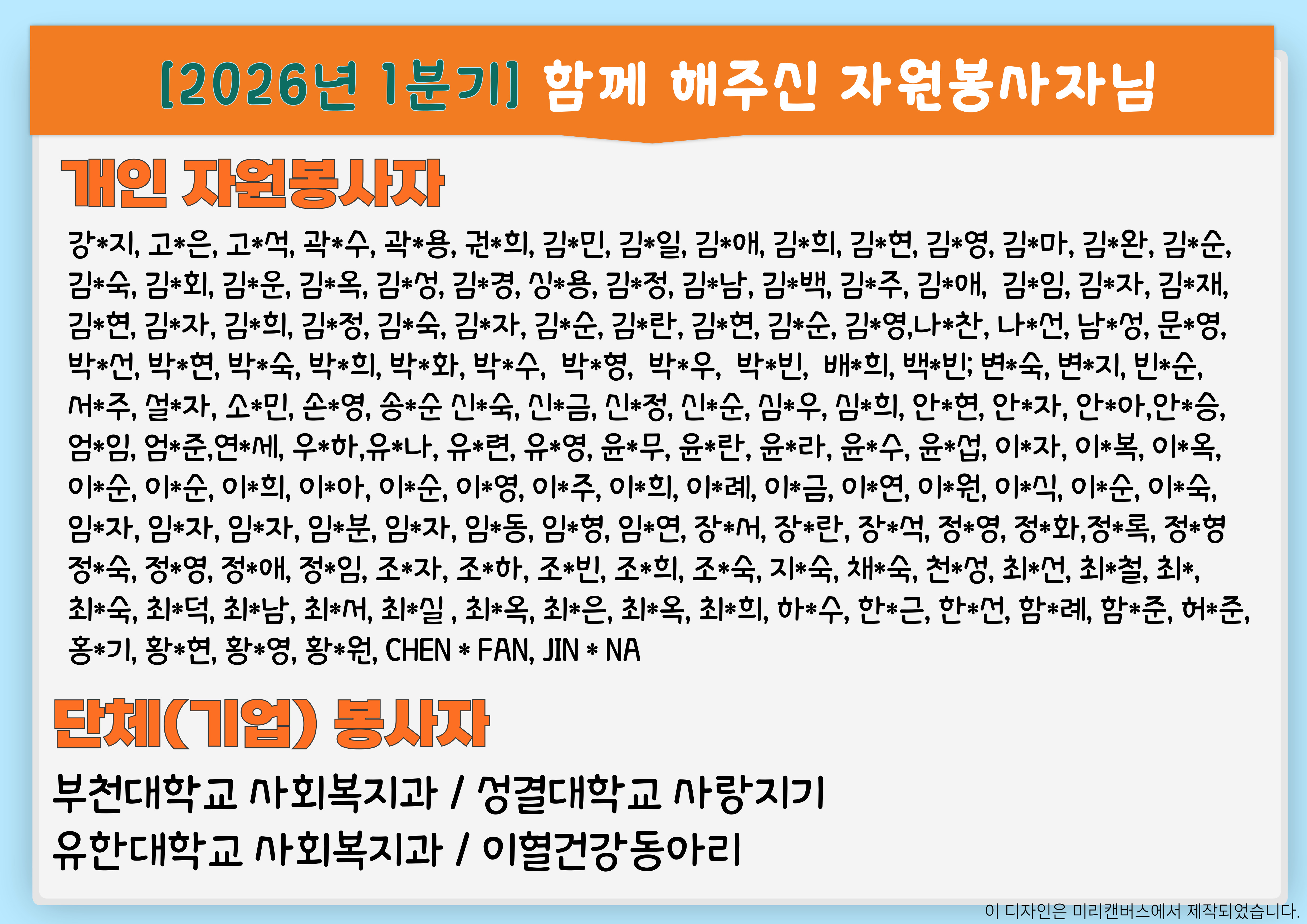 나눔으로 온기를 더해주신 후원자·봉사자 여러분께 깊은 존경과 감사를 표합니다.