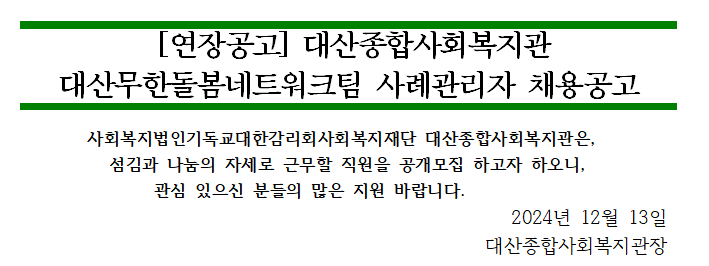 [연장공고] 대산종합사회복지관 대산무한돌봄네트워크팀 사례관리자 채용 공고
