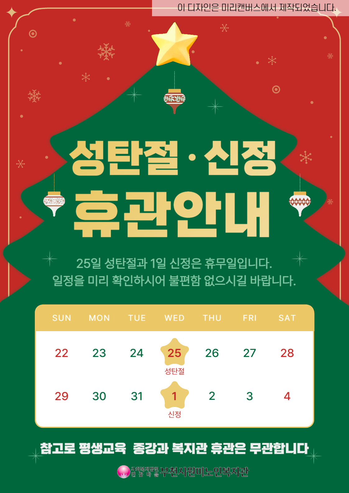 성탄절·신정 휴관 안내