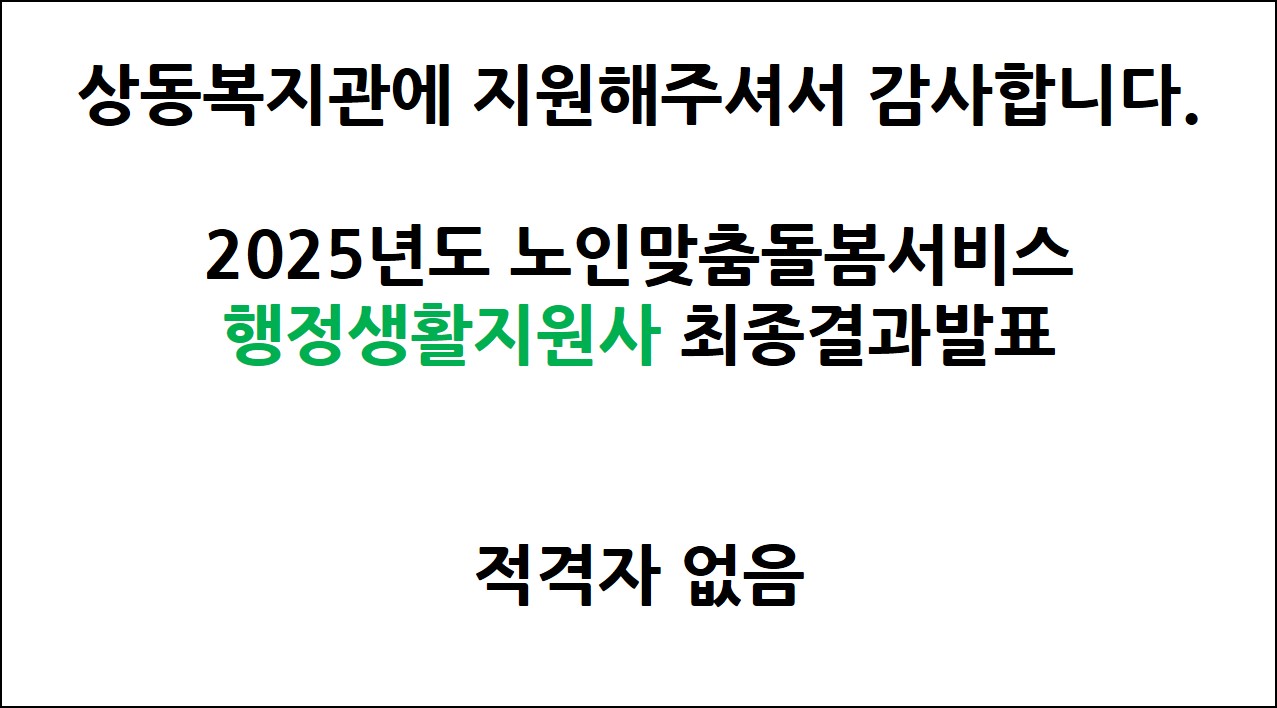[채용공지] 2025년도 상동종합사회복지관 행정생활지원사 최종결과발표