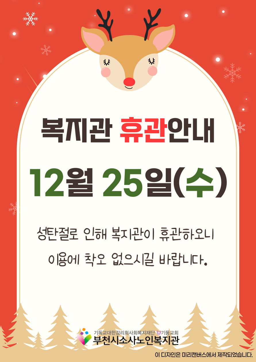 부천시오정노인복지관 12월 25일(수) 크리스마스 휴관...