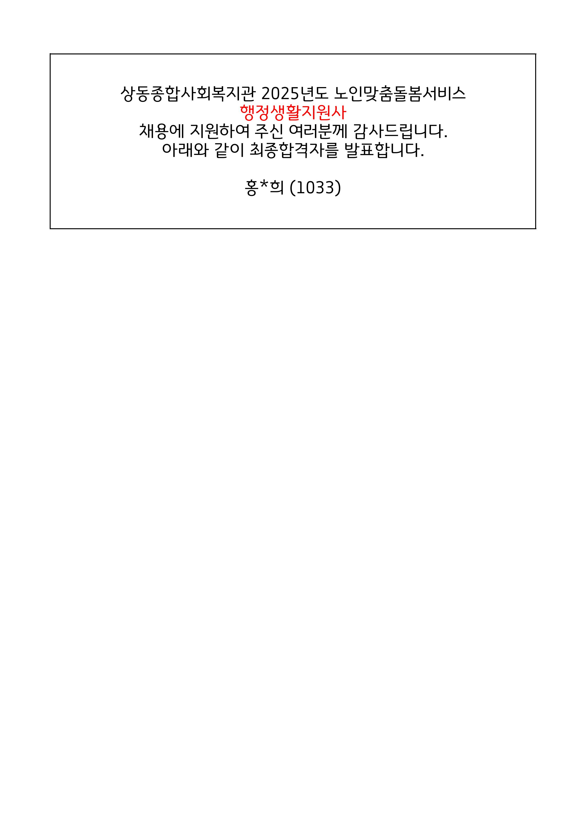 [상동채용] (긴급) 2025년도 노인맞춤돌봄서비스 행정생활지원사 최종합격자 공고
