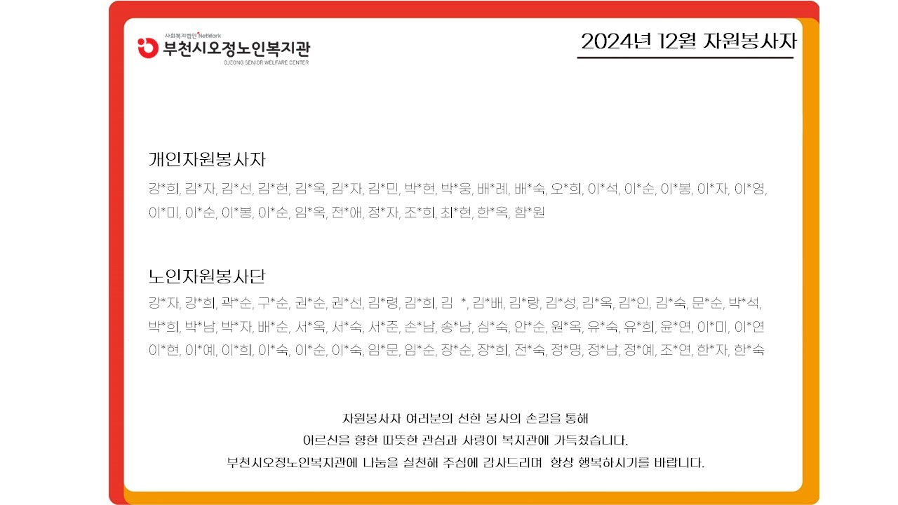 [자원봉사] 2024년 12월 자원봉사자(개인 자원봉사자, 노인자원봉사단) 안내