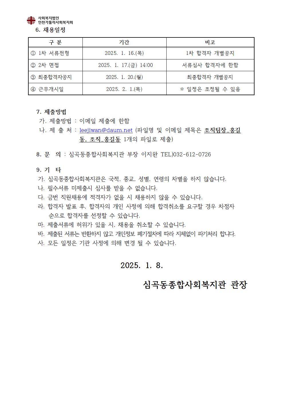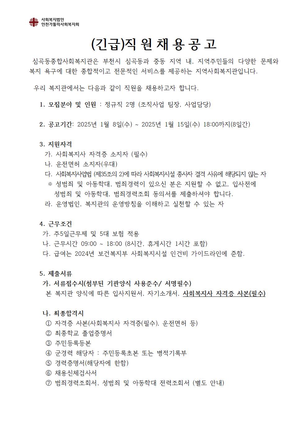 (긴급)직원채용 계획(이웃동행팀(팀장,담당)) 총 2명