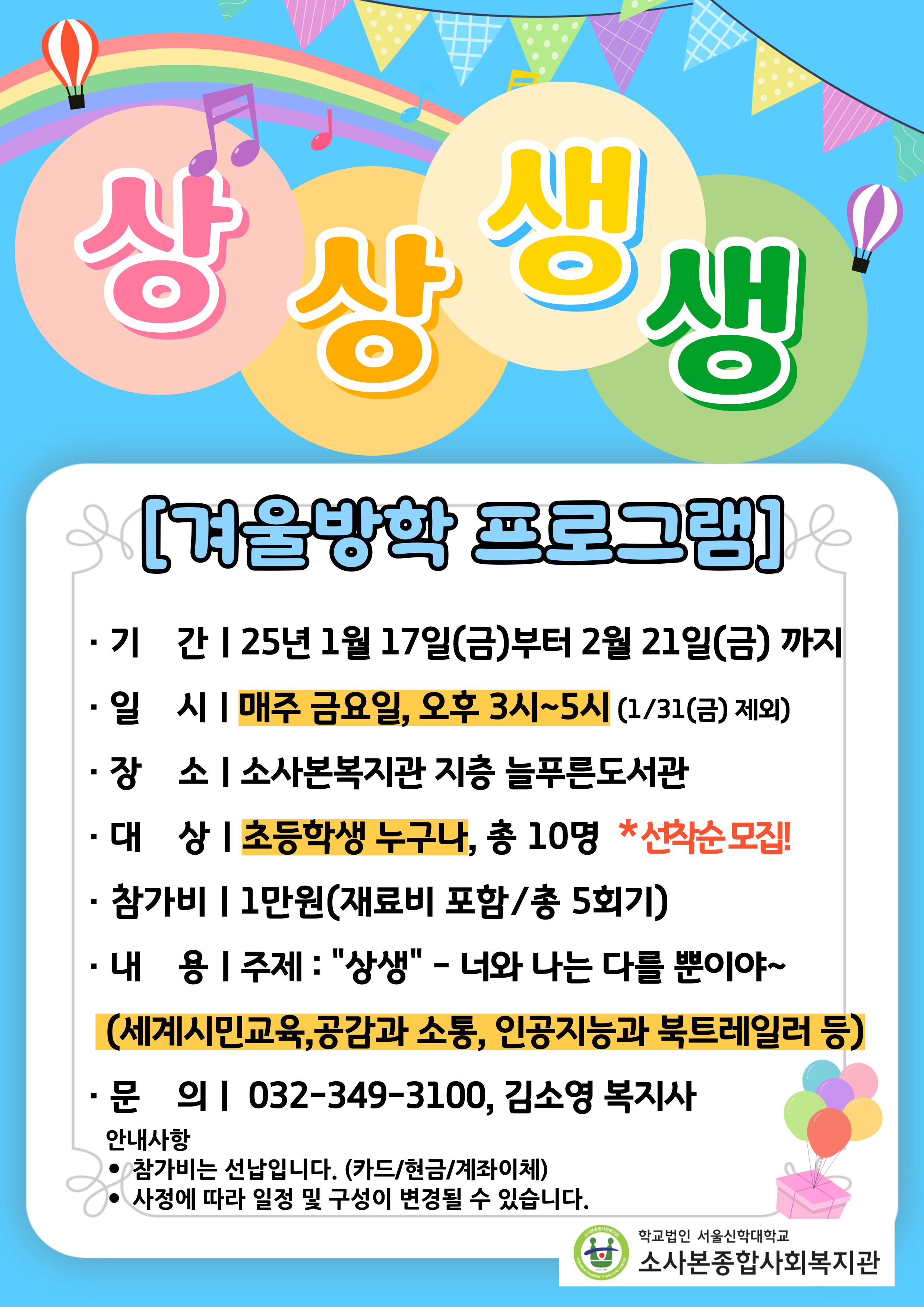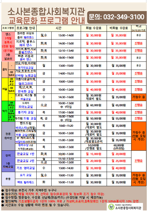 *문의 : 소사본종합사회복지관 복지2팀, 032-349-3100~2