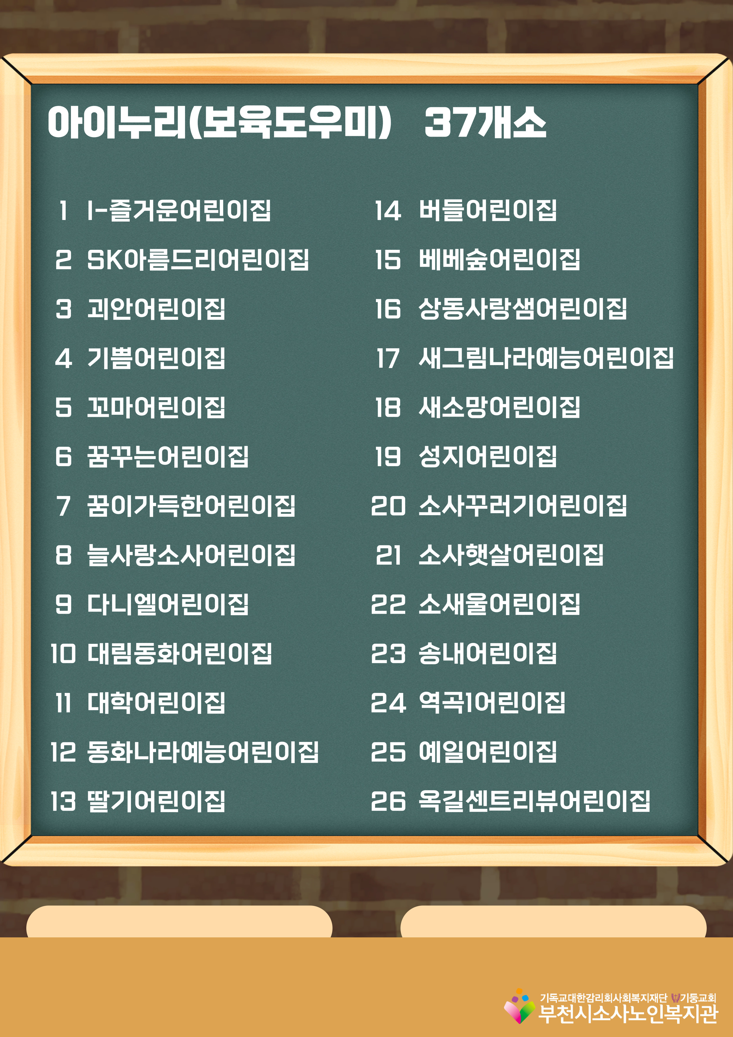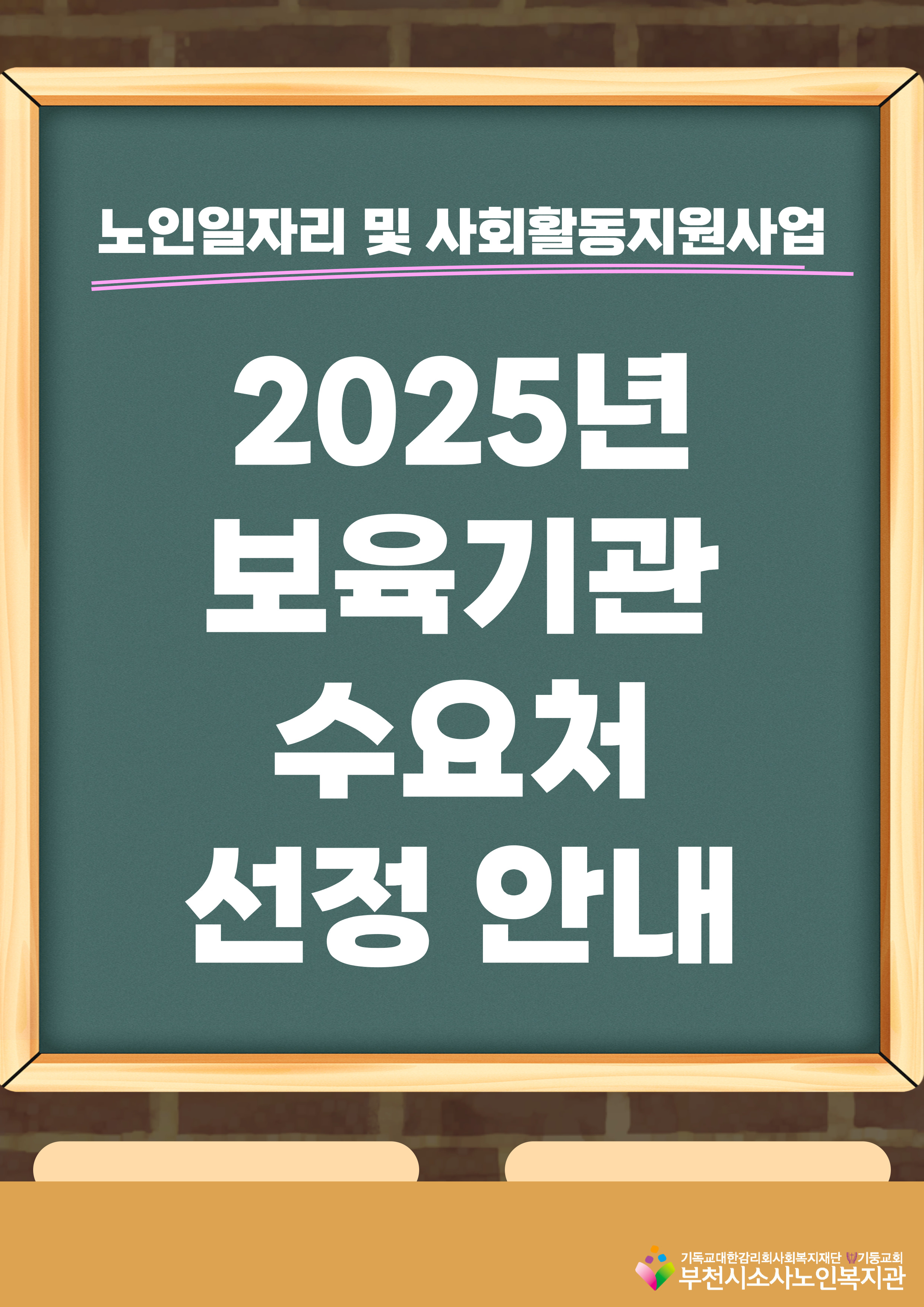 부천시소사노인복지관의 2025년 노인일자리 및 사회활동지원사업 드림티쳐, 아이누리 사업단 보육기관 수요처 선정 결과를 안내드립니다.