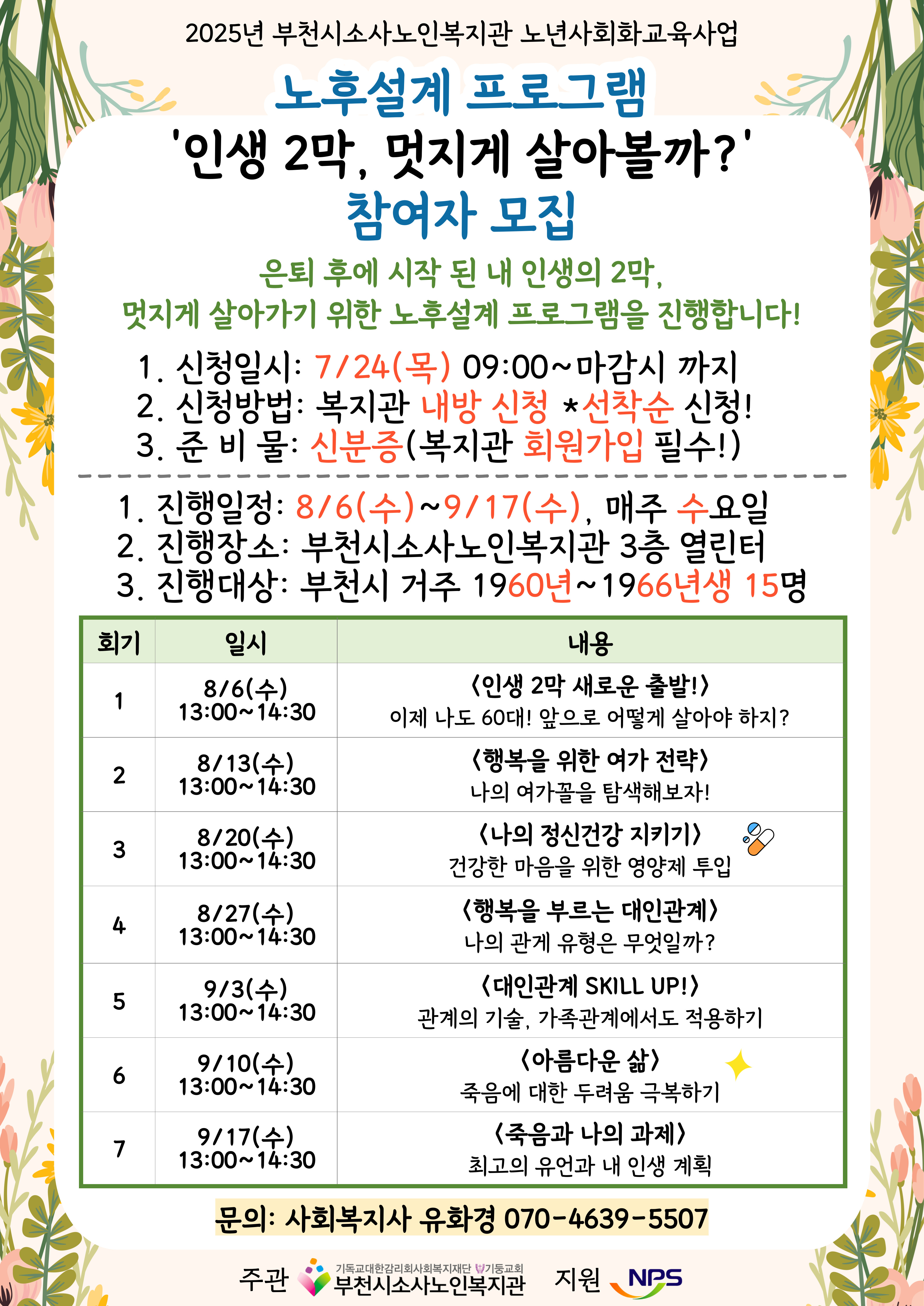 [노년사회화교육사업] 노후설계 프로그램 참여자 모집