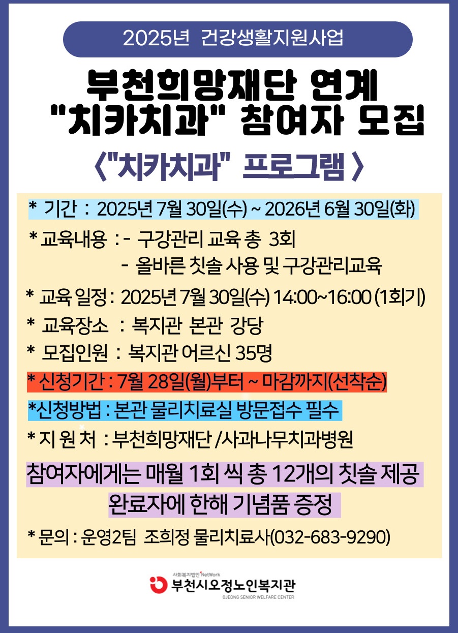 2025년 건강생활지원사업 부천희망재단 연계 치카치과