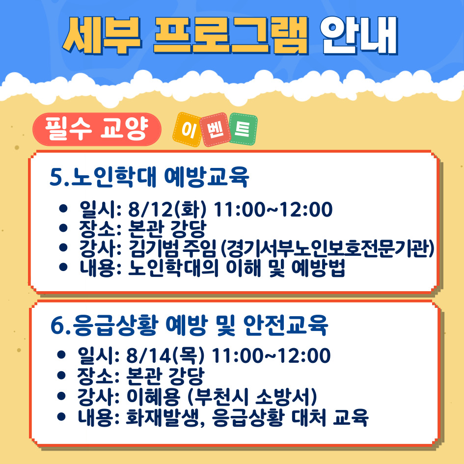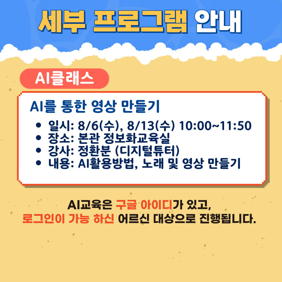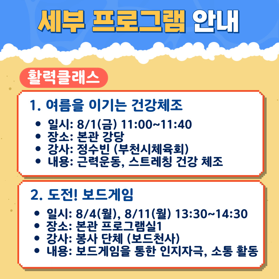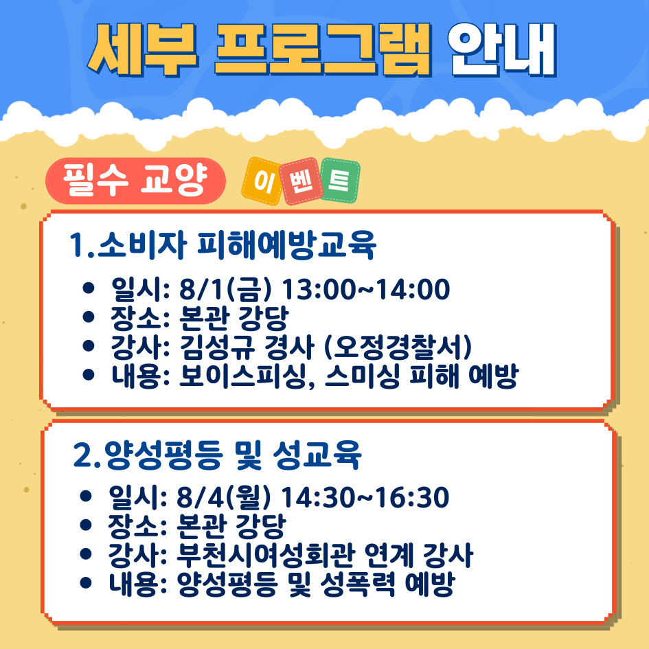 2025년 평생교육 여름방학 특강 '오정 여름 클래스' 안내