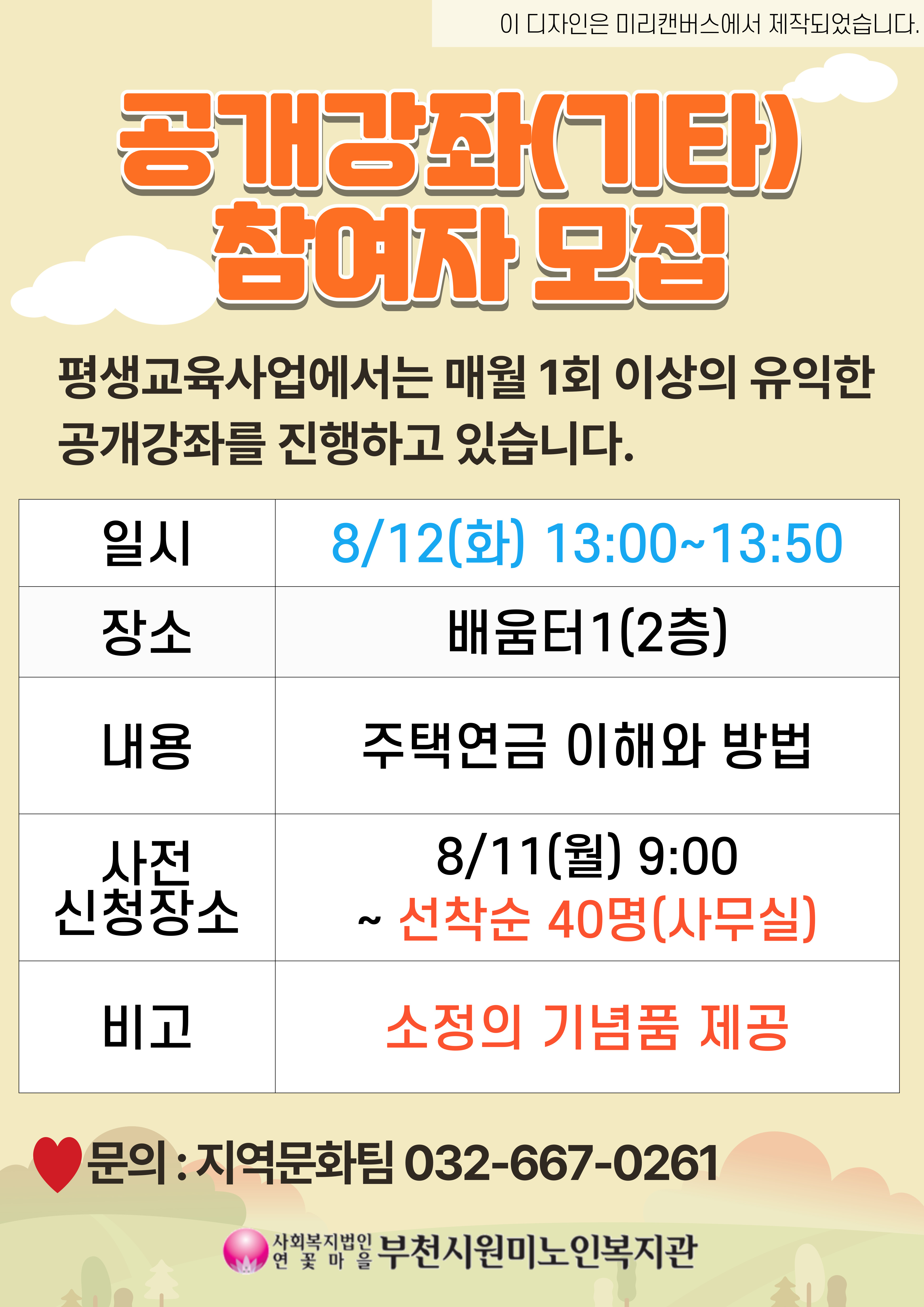 원미노인복지관 8월 무료 법률상담 신청 안내