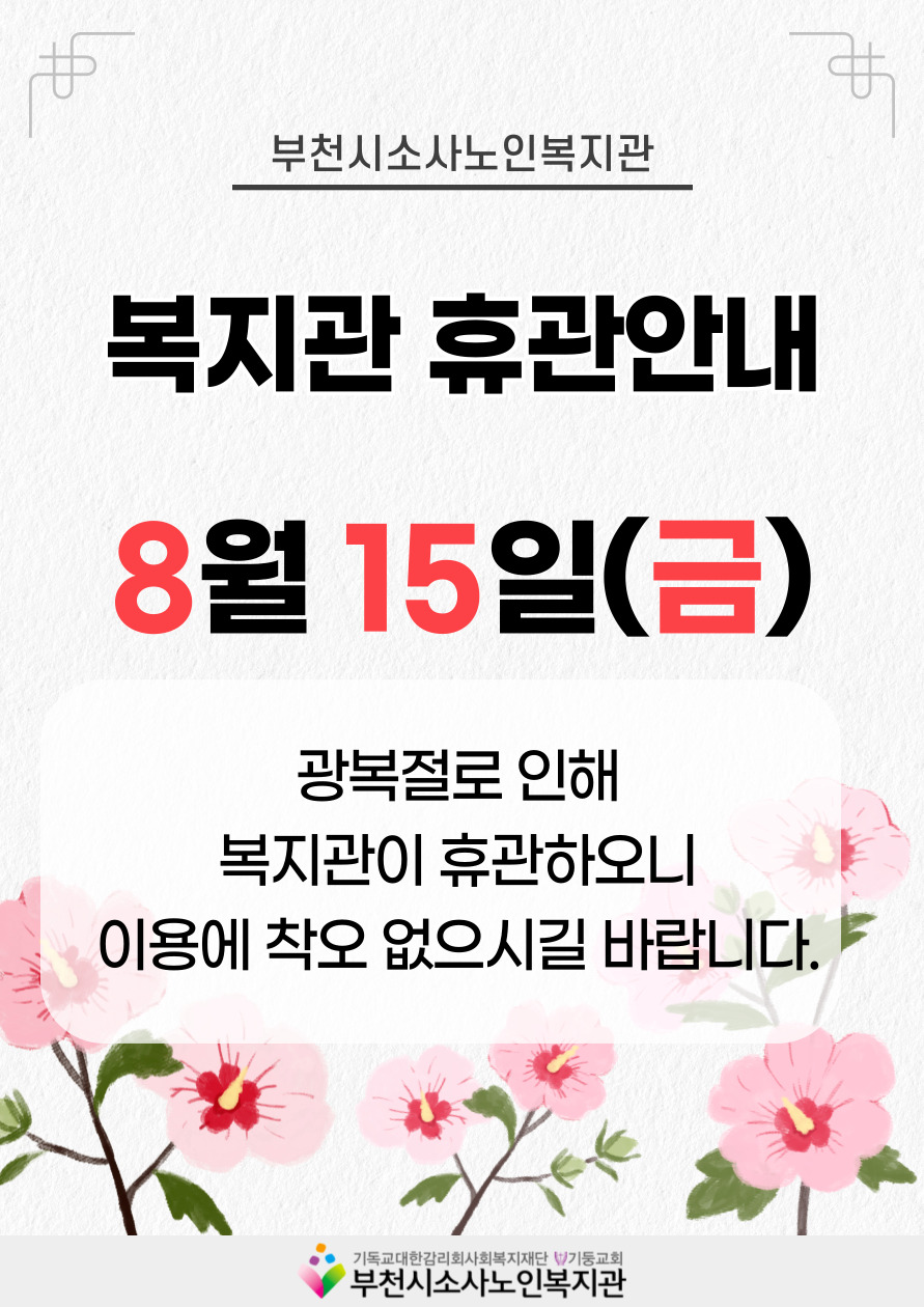 [부천시소사노인복지관] 2025년 8월 복지관 휴관 안내