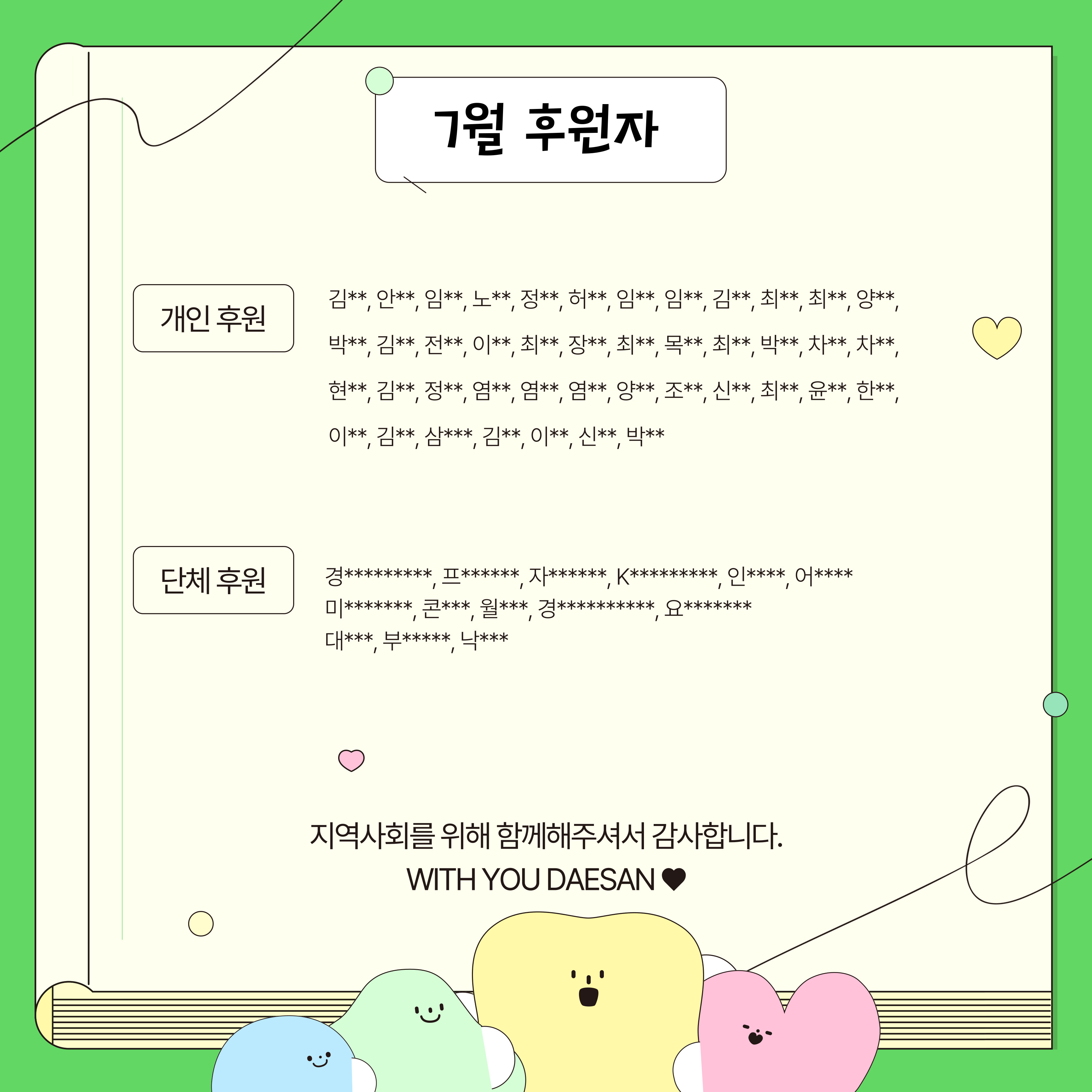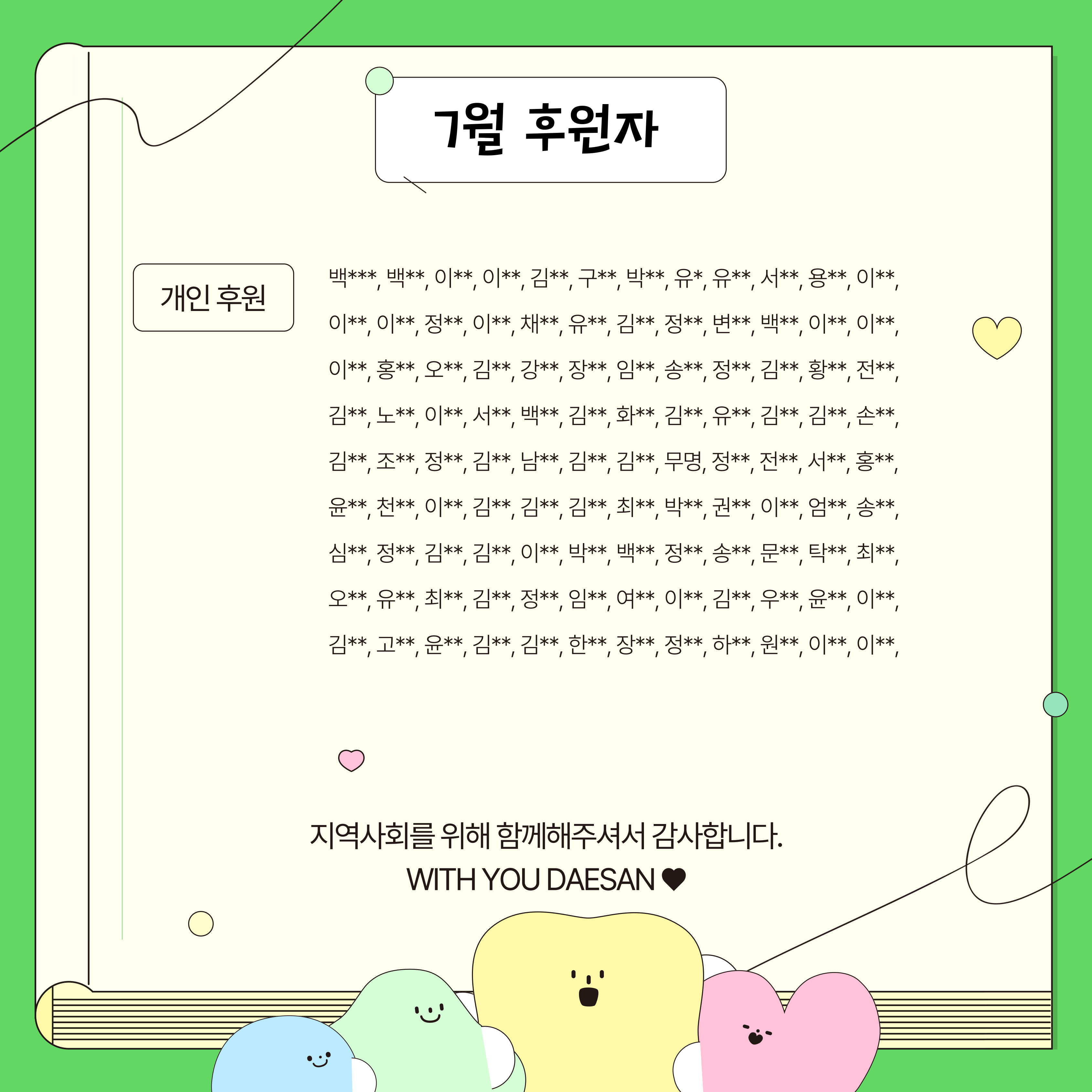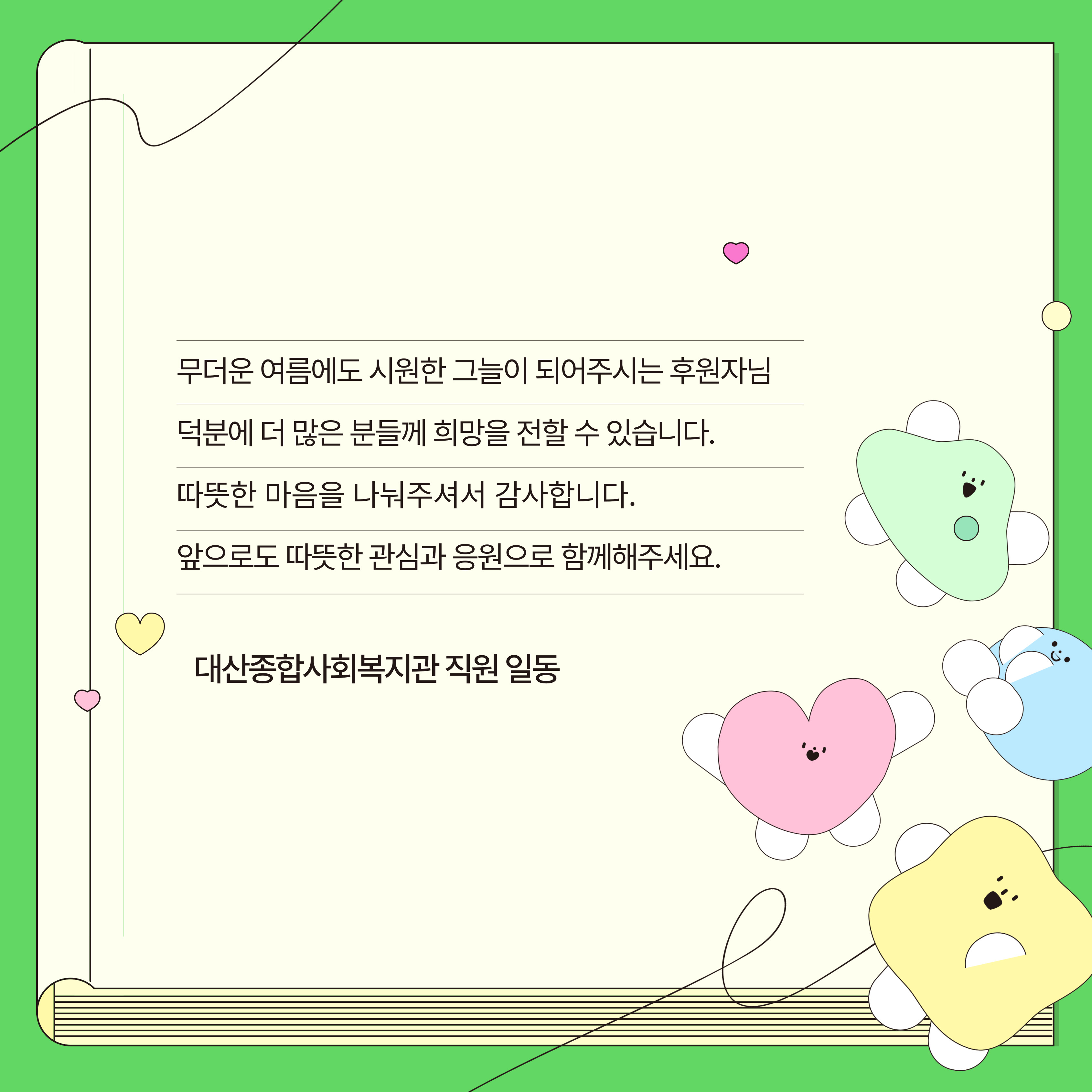 2025년 7월 대산종합사회복지관 후원에 감사드립니다.