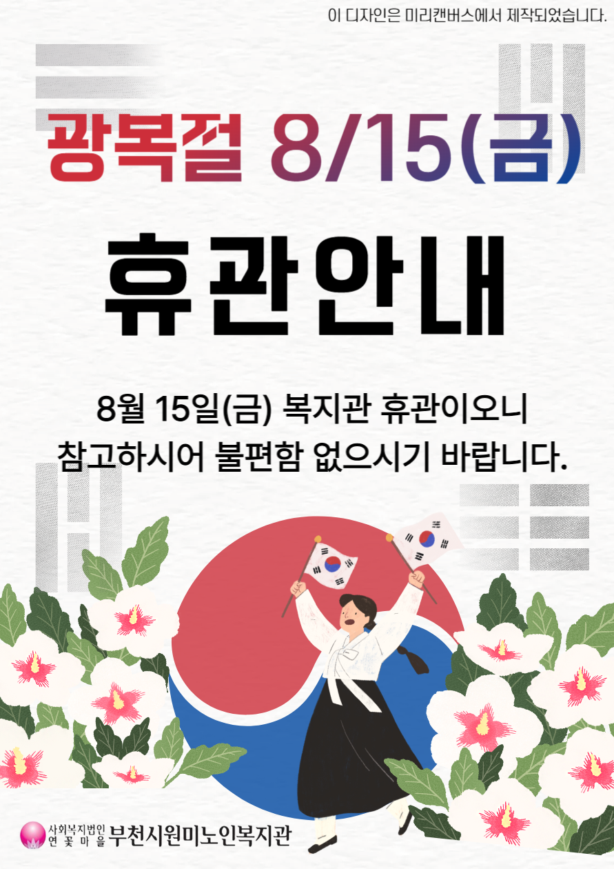 원미노인복지관 8/15(금) 광복절 휴관 안내