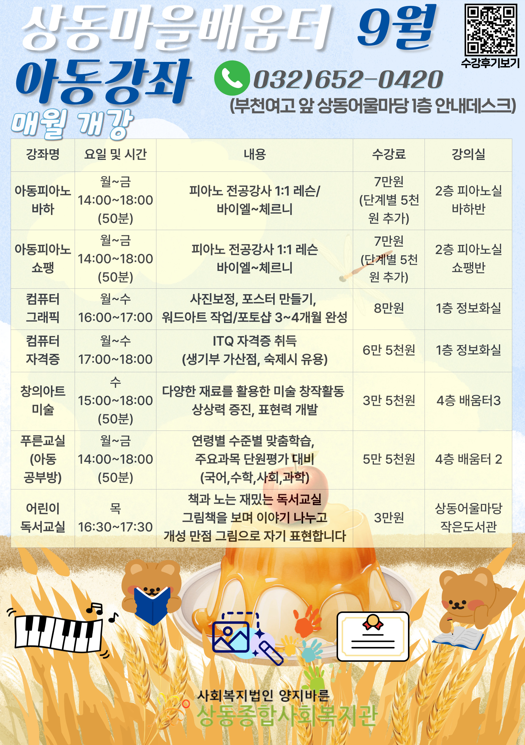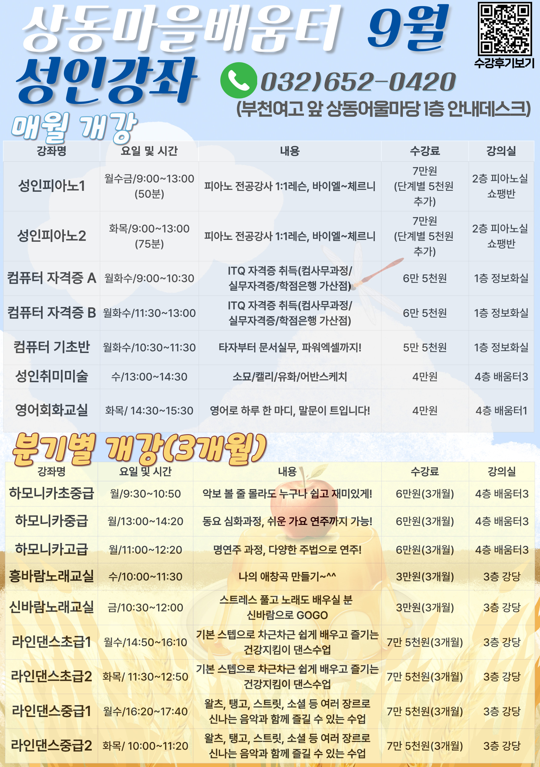 [상동] 9월 상동마을배움터 프로그램 수강모집