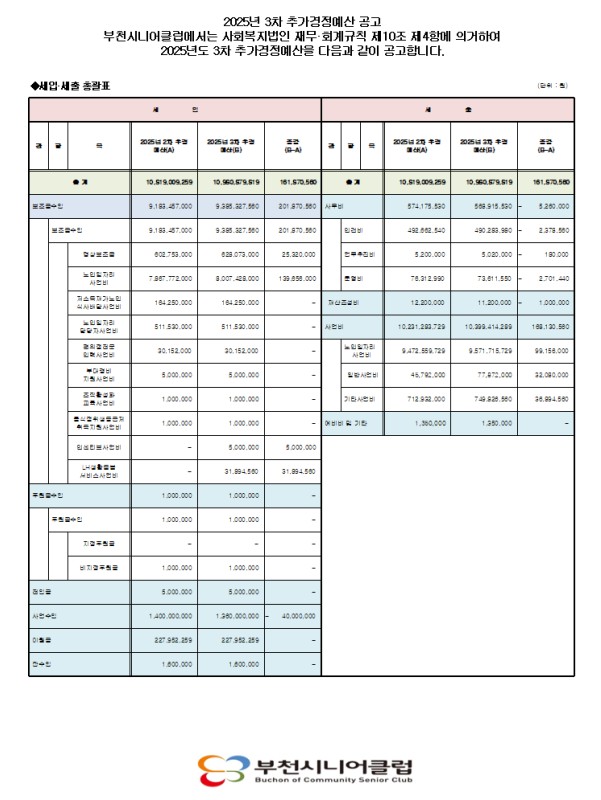 2025년 부천시니어클럽 3차 추가경정 예산 공고