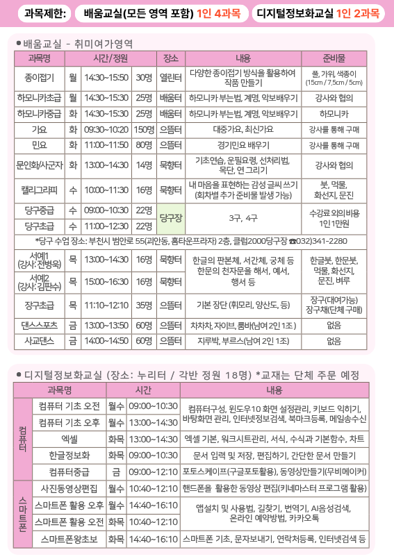 [노년사회화교육사업]2026년 상반기 배움교실 & 1분기 디지털정보화교실 프로그램 모집 안내