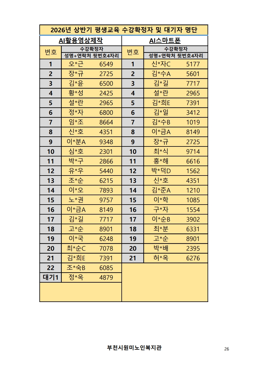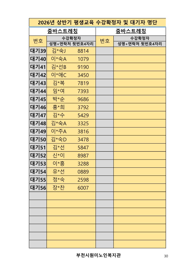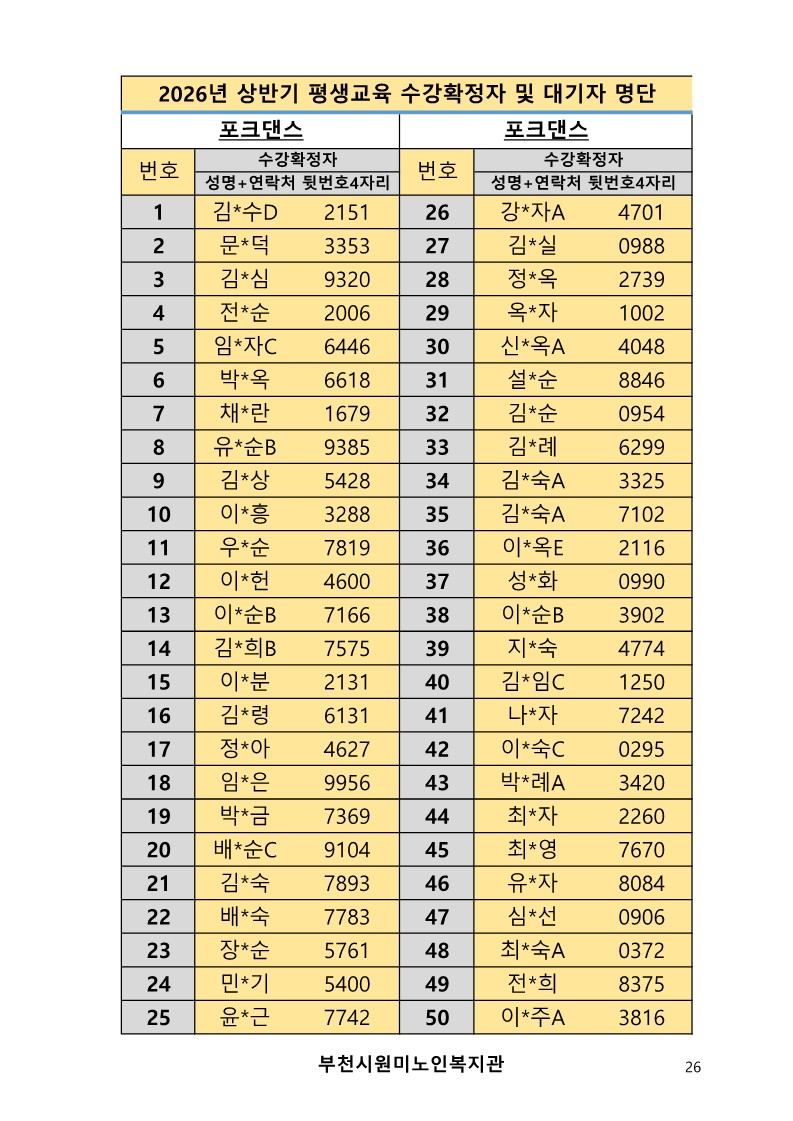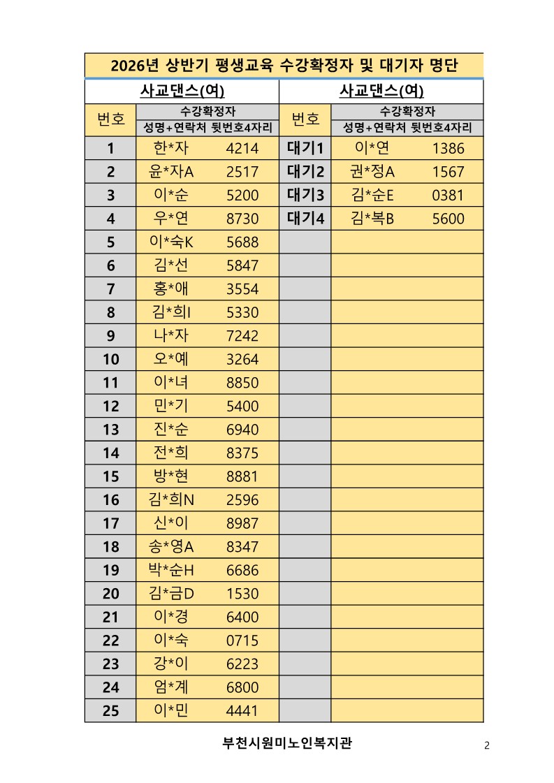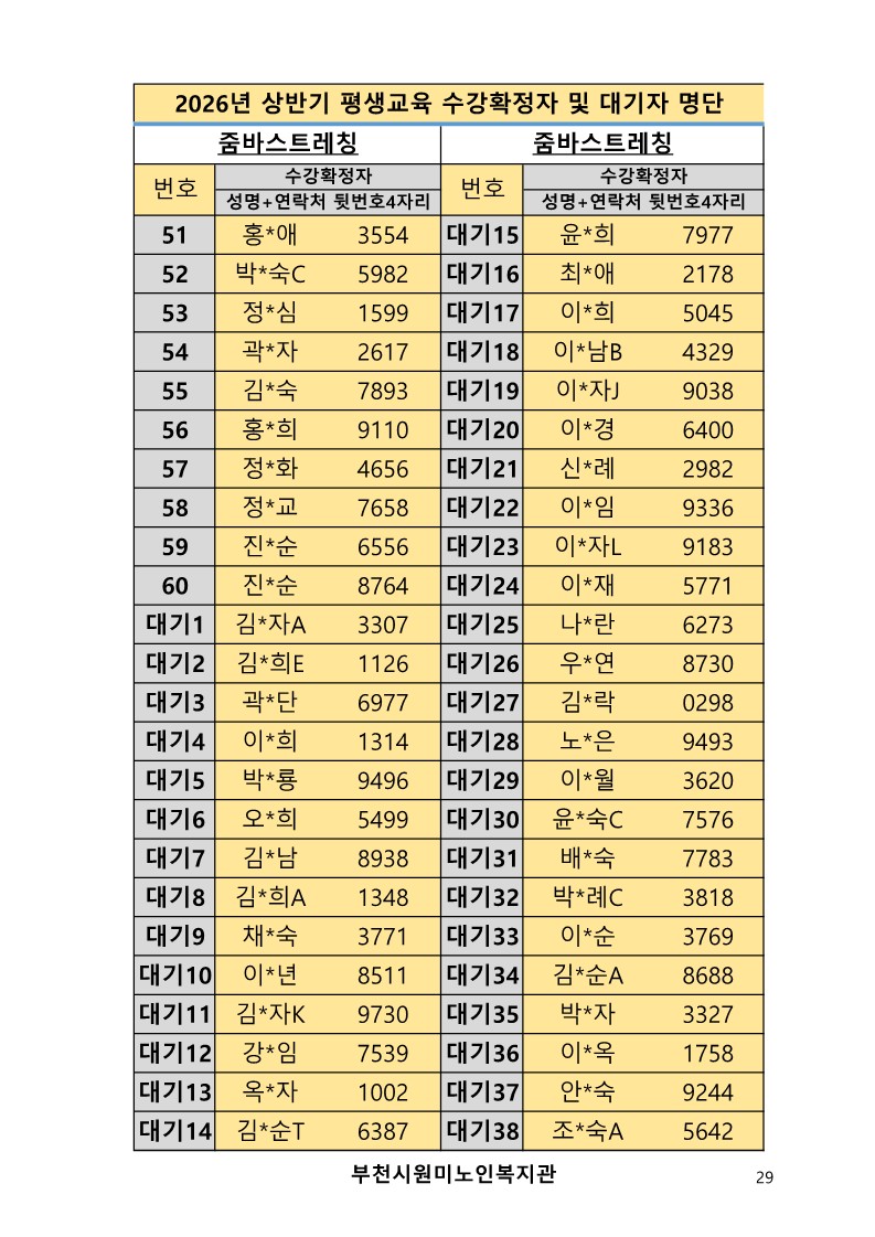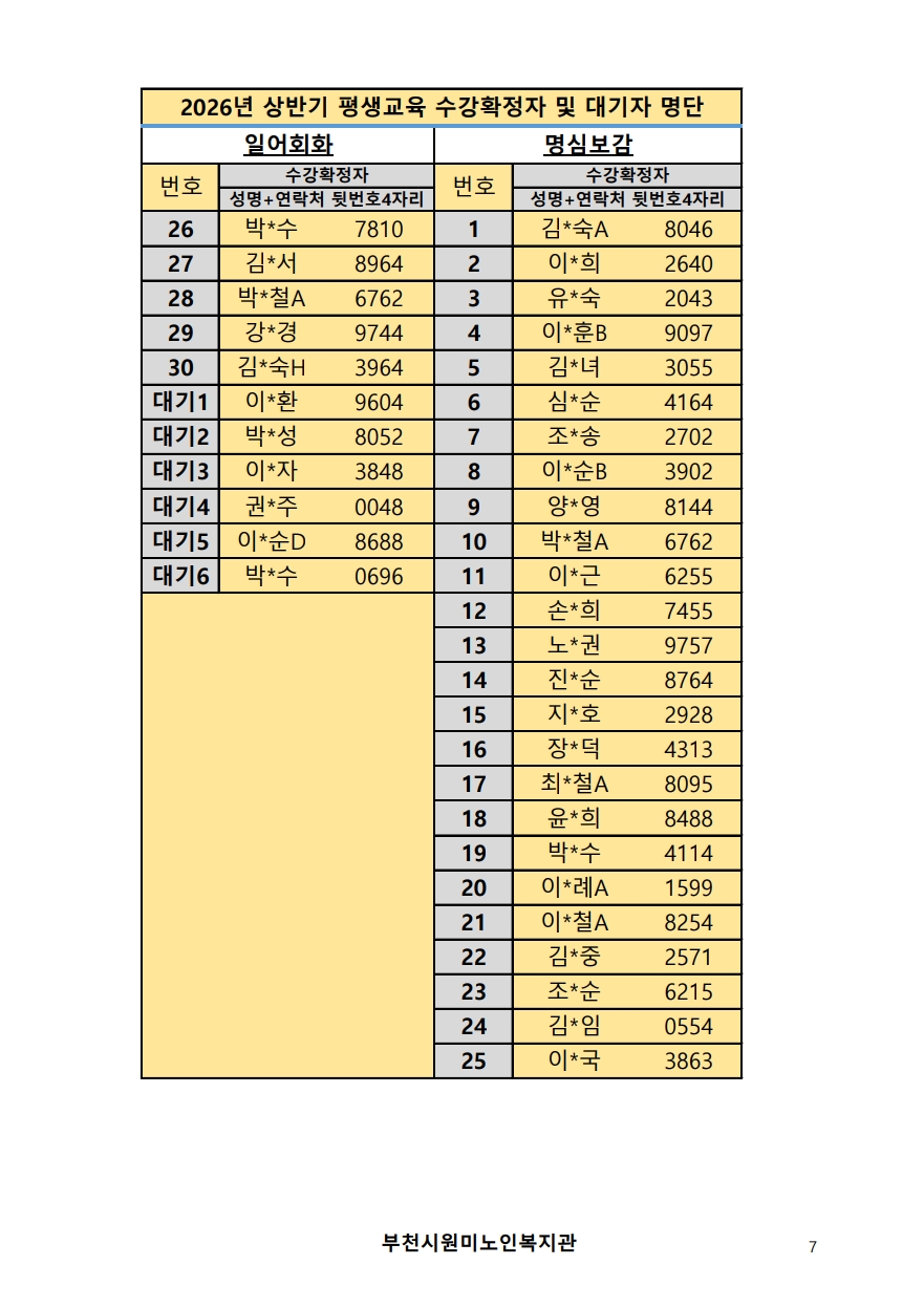 2026년 평생교육 상반기 프로그램 수강신청 결과 발표