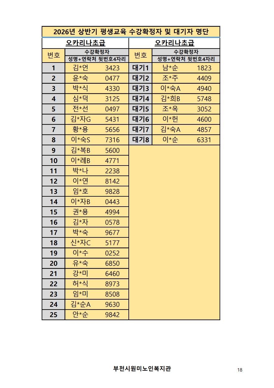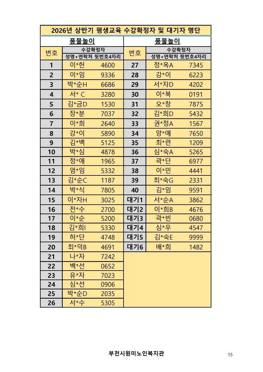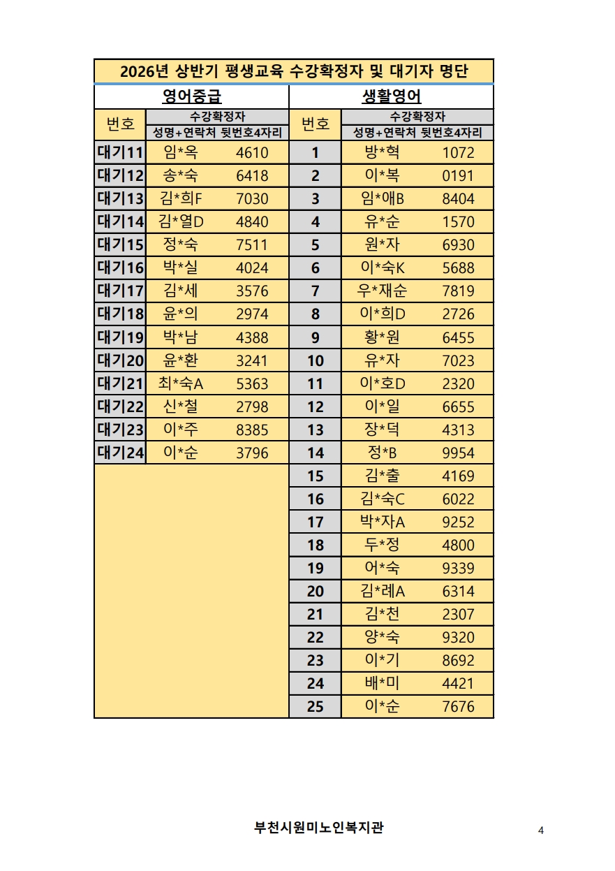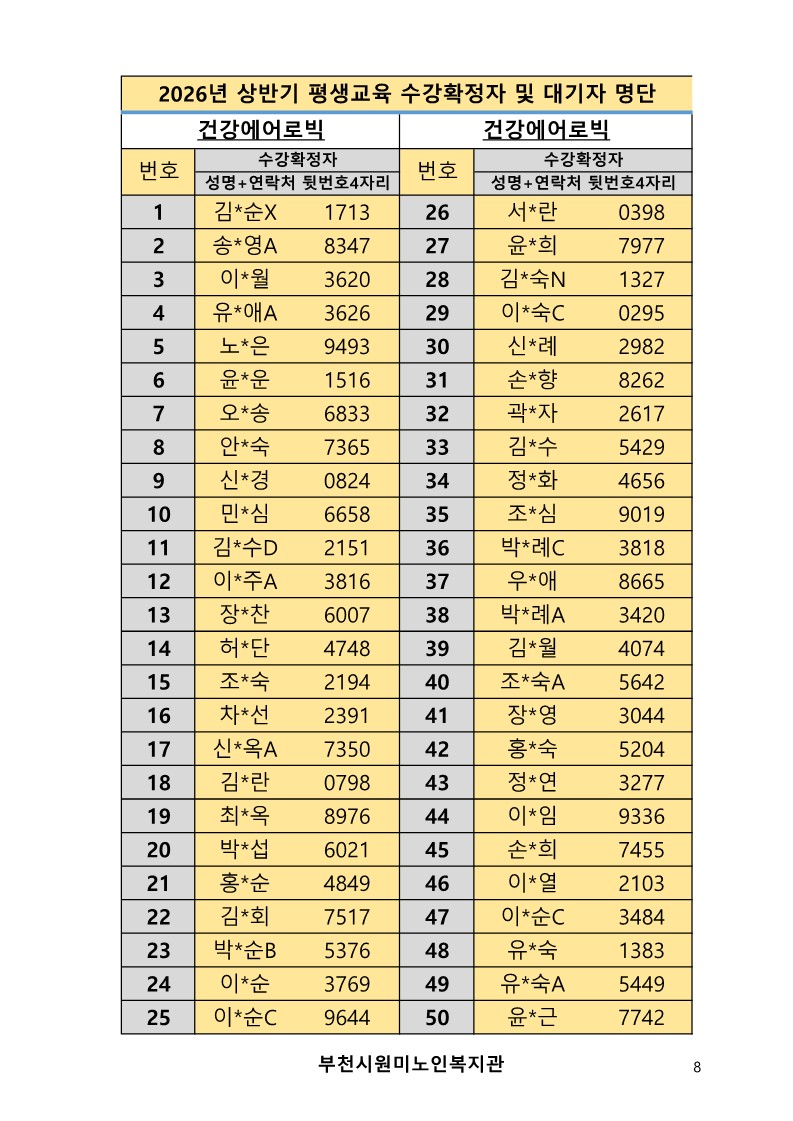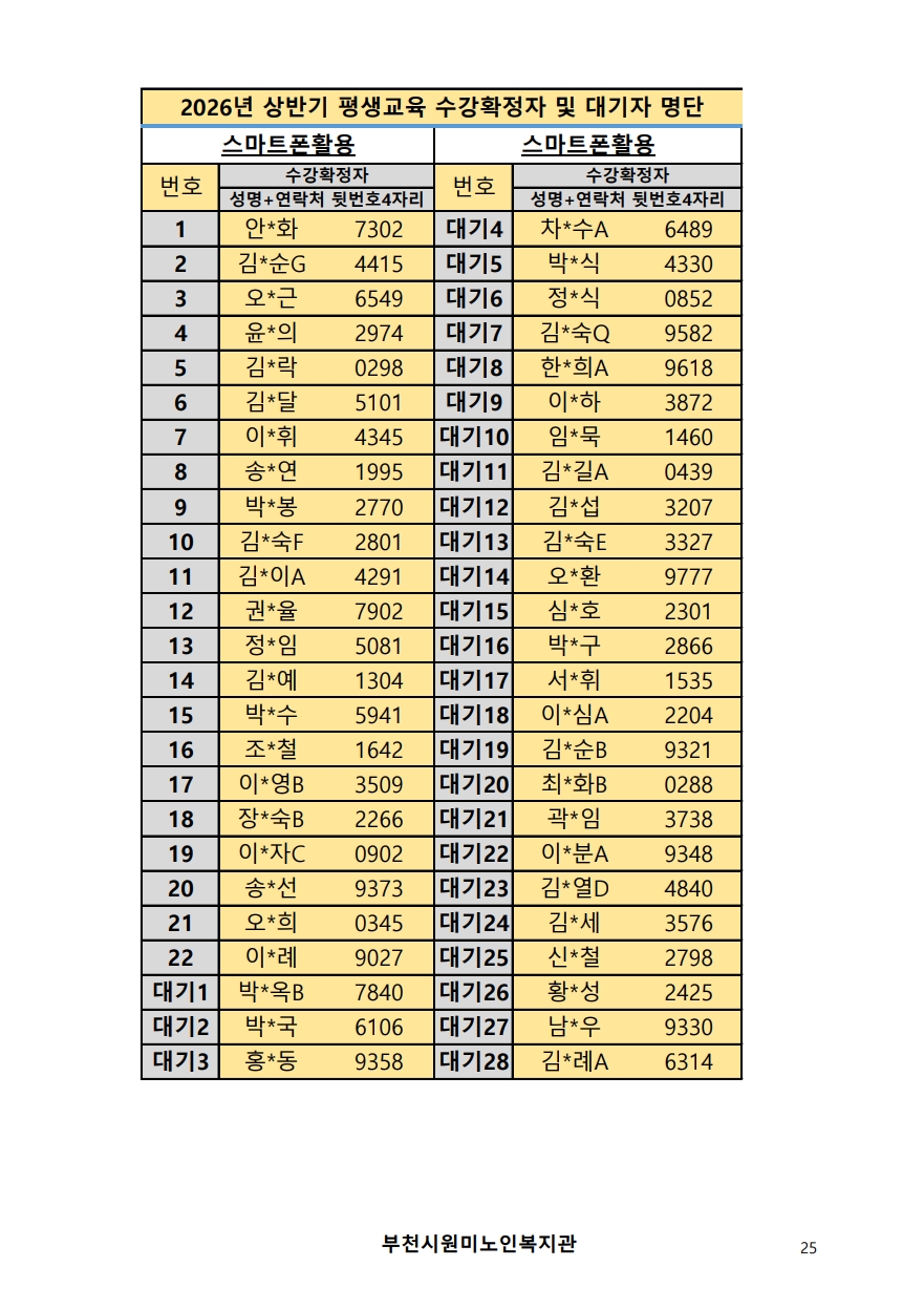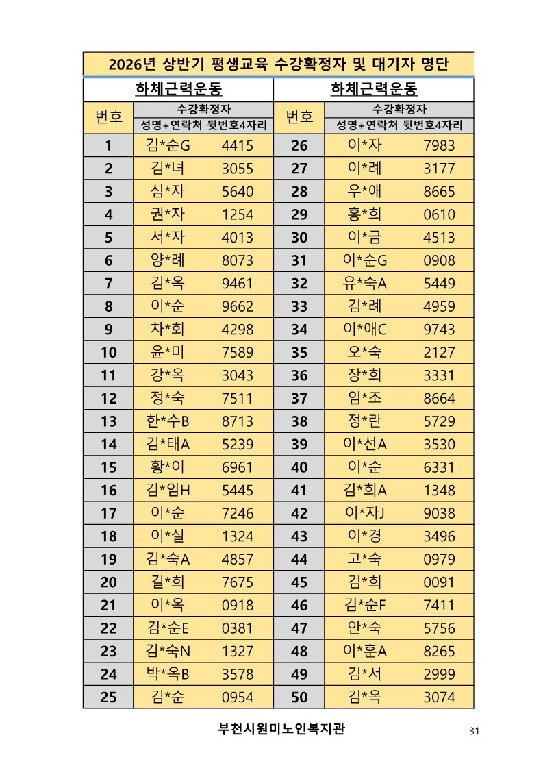 2026년 평생교육 상반기 프로그램 수강신청 결과 발표