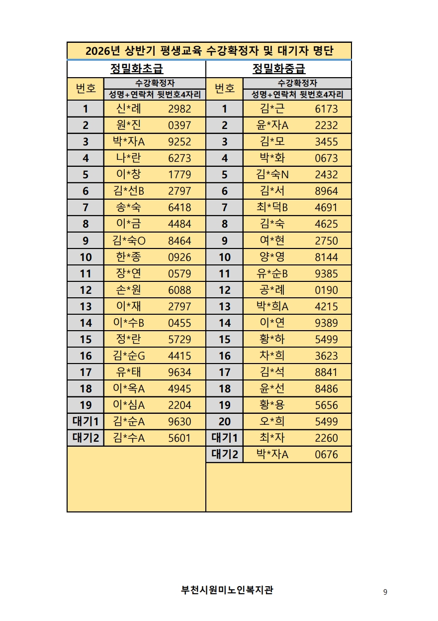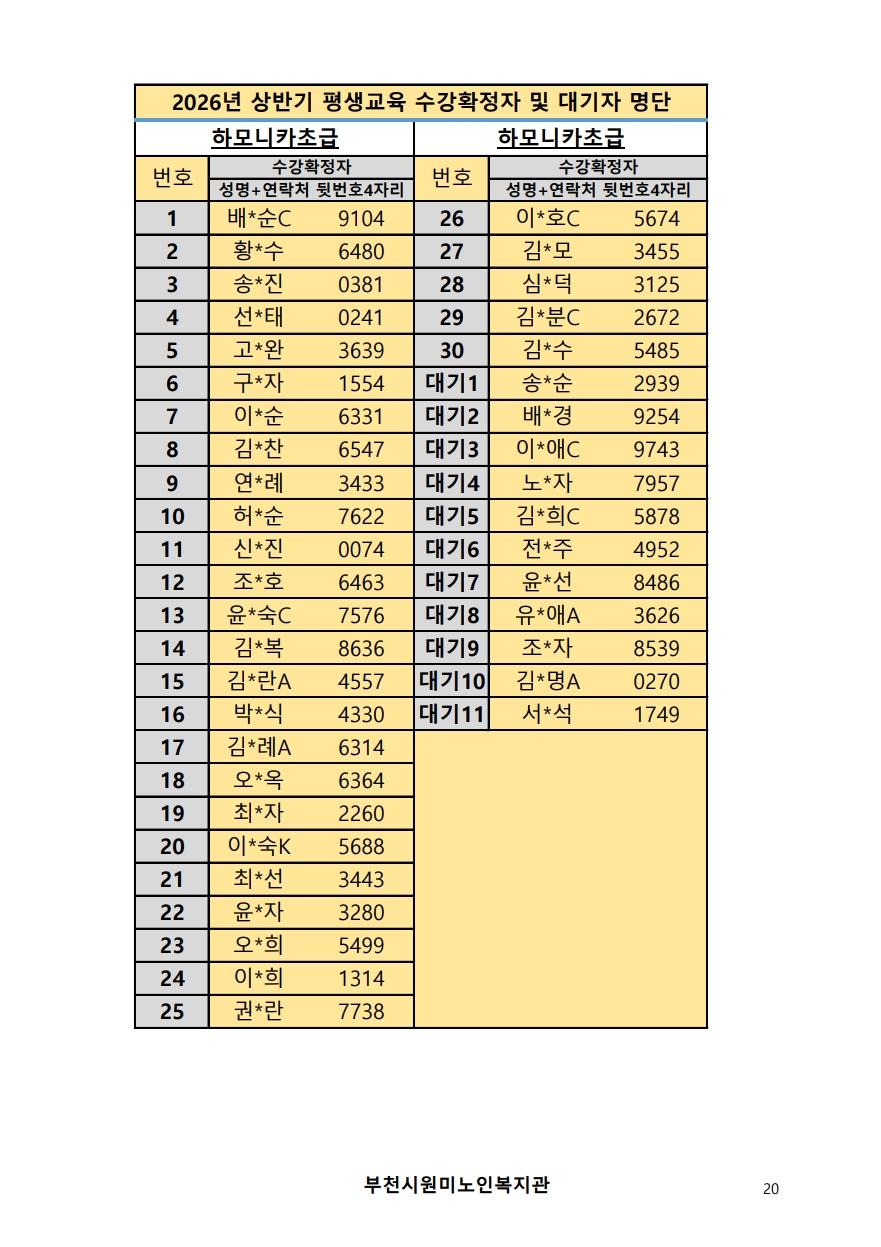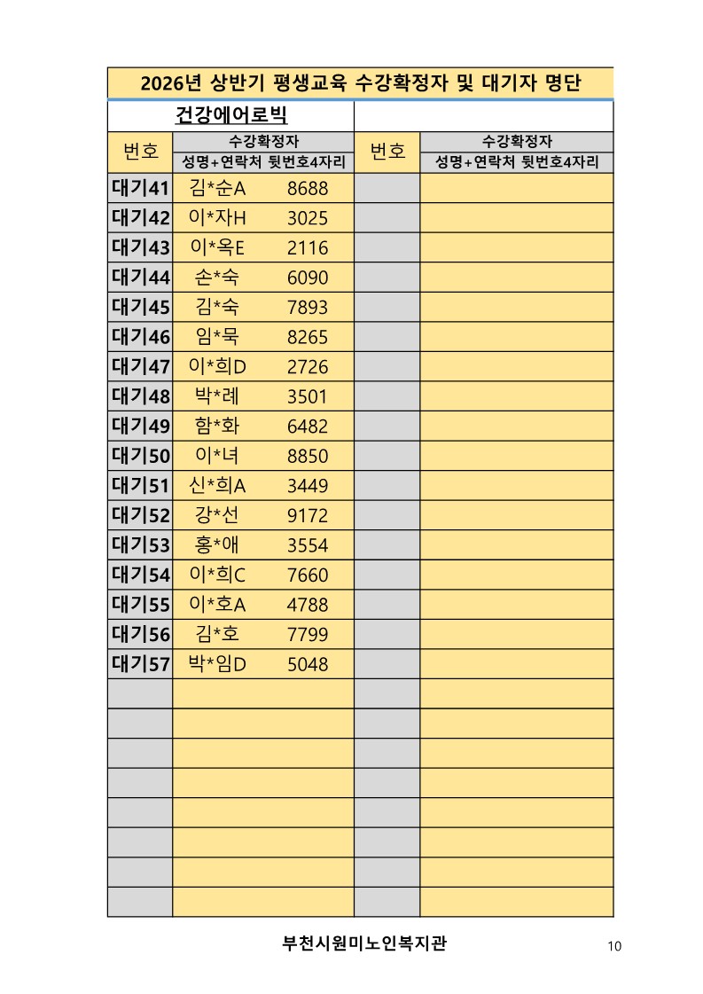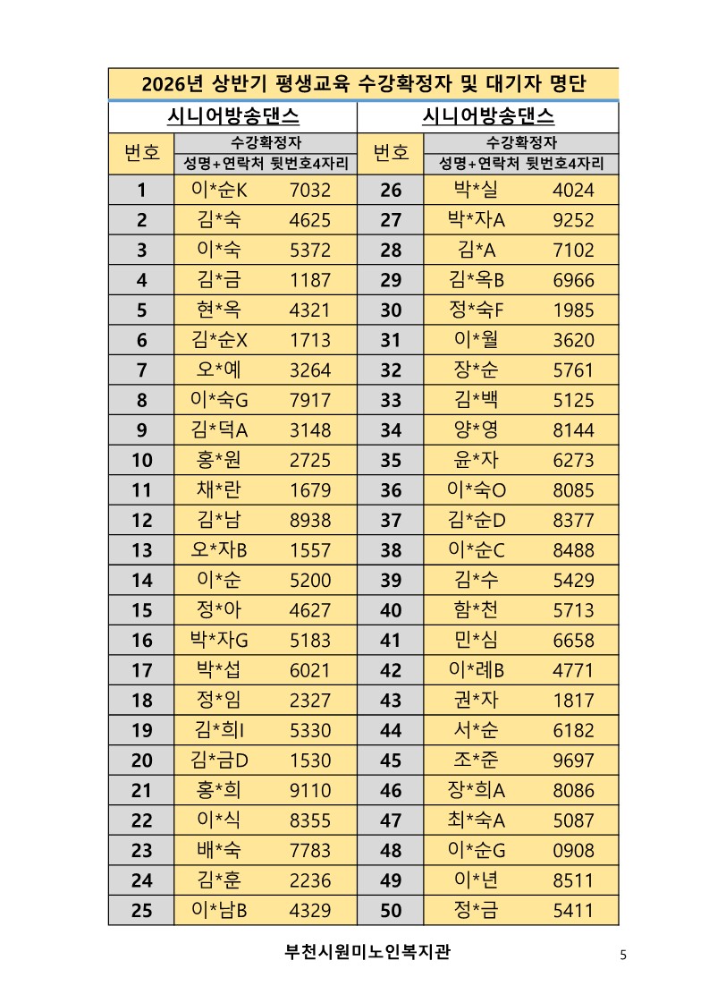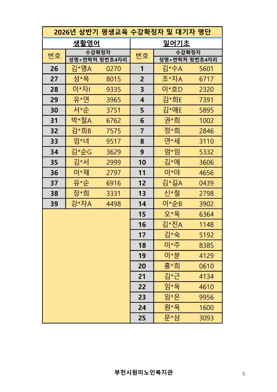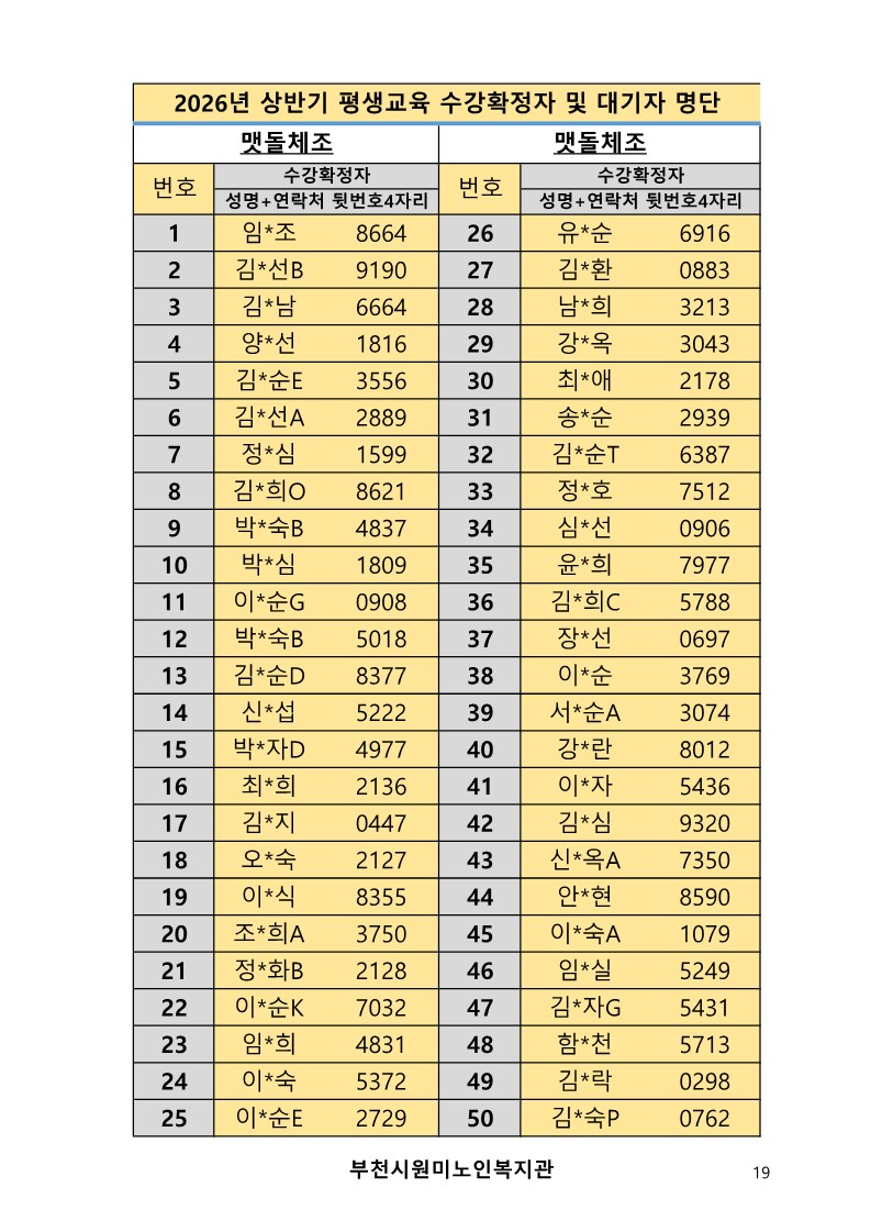 2026년 평생교육 상반기 프로그램 수강신청 결과 발표